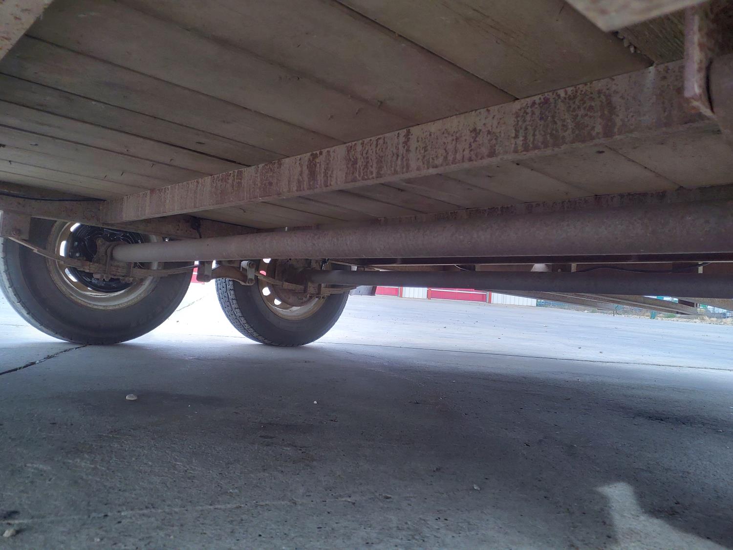 82 inch wide deck, wood deck, spring suspension, ball hitch, stake pockets, ramps, spare tire, 3500 lb axles, 205/75R15 tires