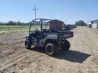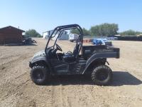 600 cc engine, automatic transmission, Hi/Lo range, open canopy, 2 passengers, front brush guard, manual dump box, receiver hitch, independent suspension, 26X9.00-12 front tires, 26X11.00-12 rear tires