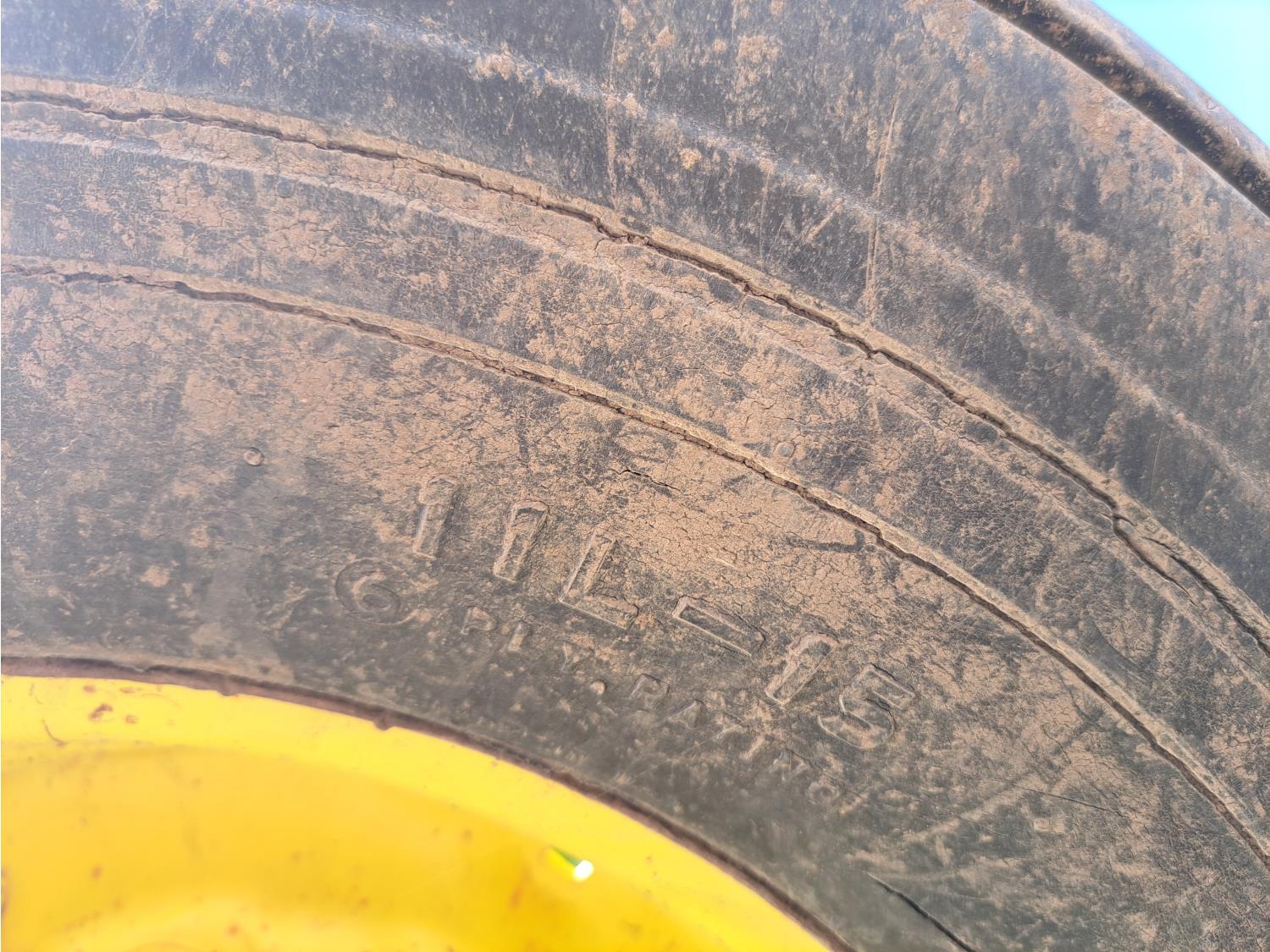 front: 8.5 inch spacing notched 21 inch discs, rear: 9 inch spacing notched 22 inch discs, duals main frame, 11L-15 tires
