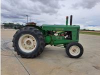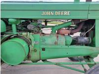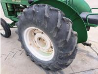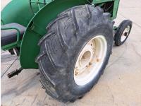 John Deere 2 cylinder gas engine, 6 speed manual transmission, 540 PTO, 1 rear hydraulic outlets, 6.00-16 front tires, 16.9-26 rear tires