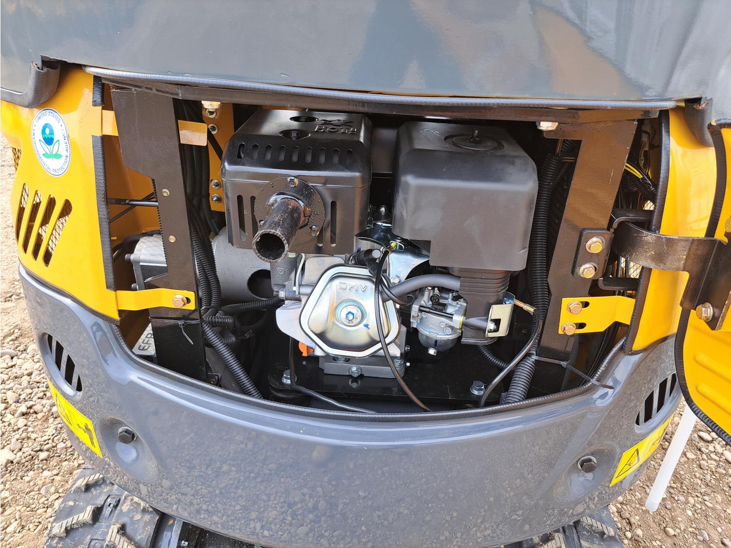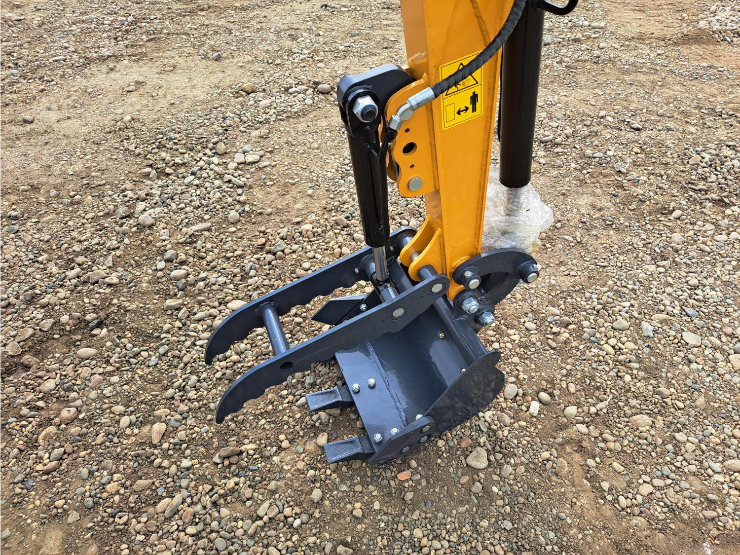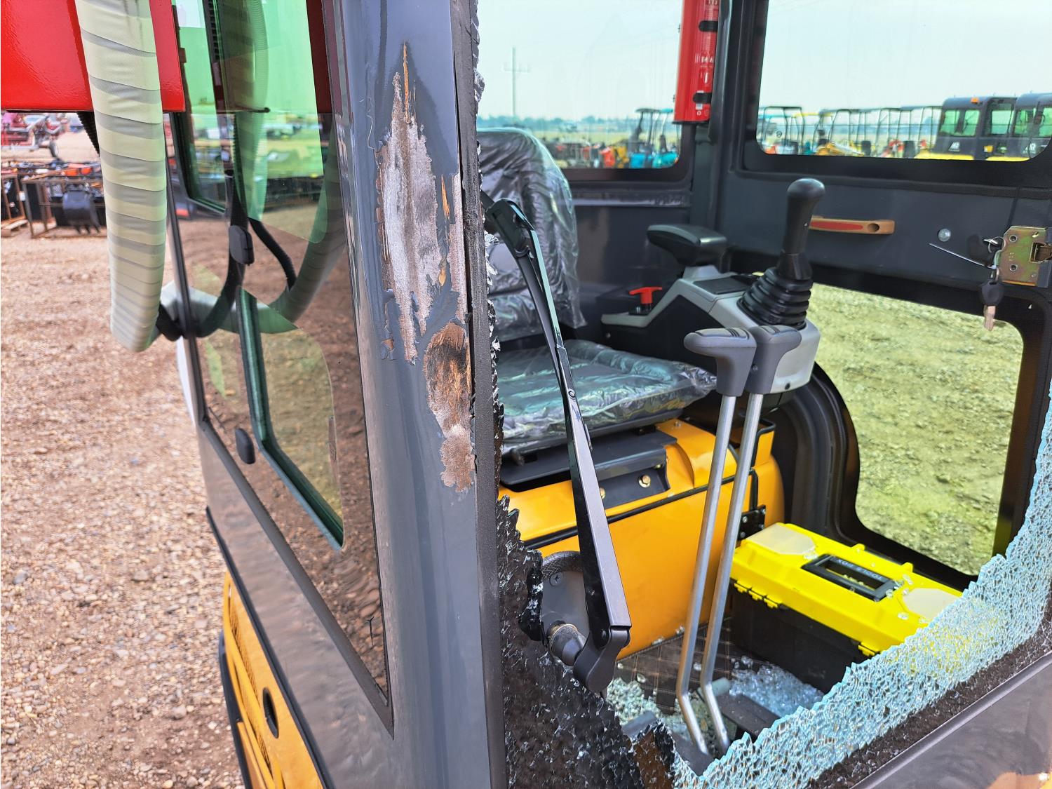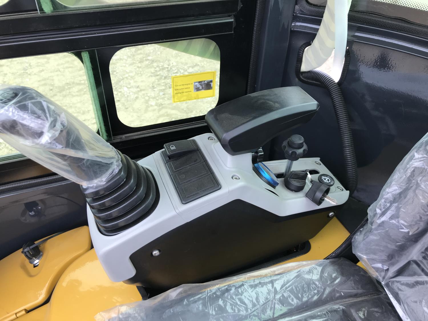 Enclosed cab, A/C, 17 inch dig bucket, manual coupler, manual thumb, 28 inch stick, backfill blade, 7 inch rubber tracks