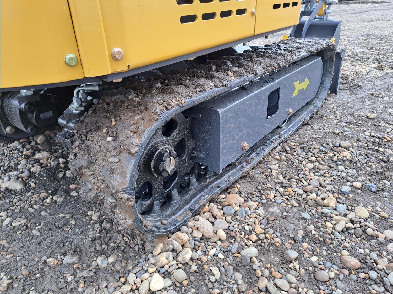 Open station, gas engine, 16 inch dig bucket, manual coupler, manual thumb, 31 inch stick, backfill blade, 7 inch rubber tracks