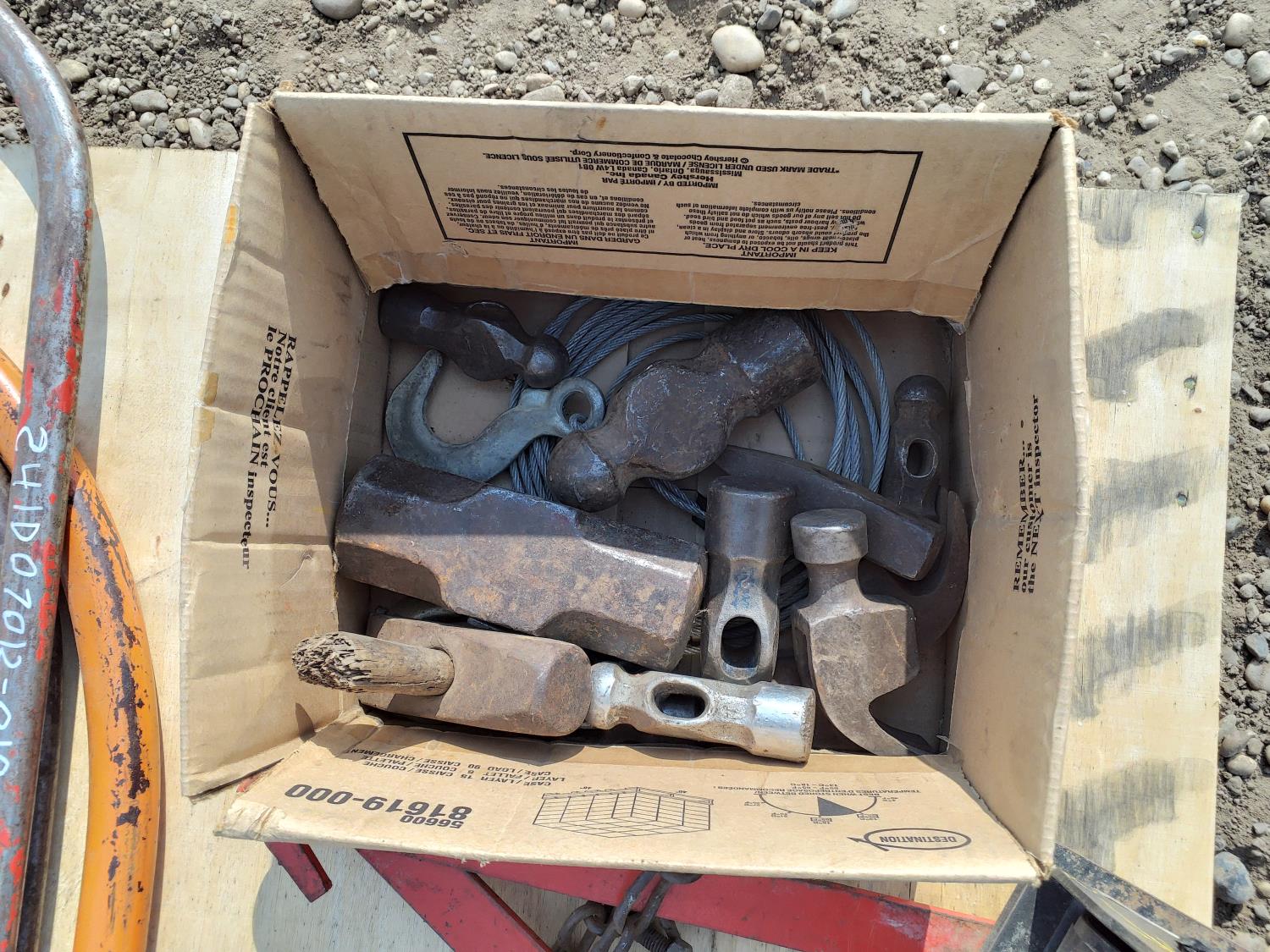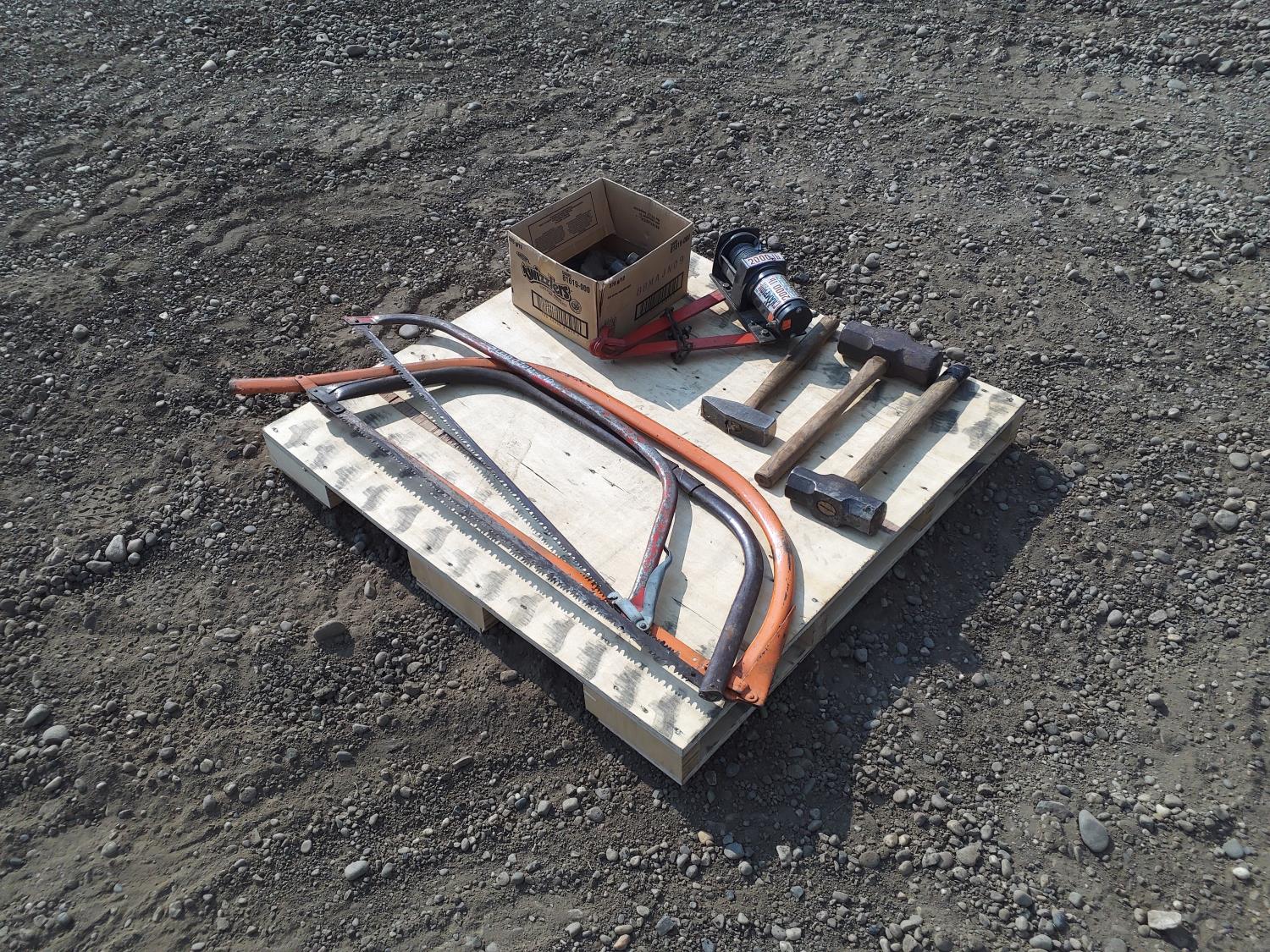 261 Misc Hammer Heads, Winch Cable, Winch, Hand Saws and Hammers