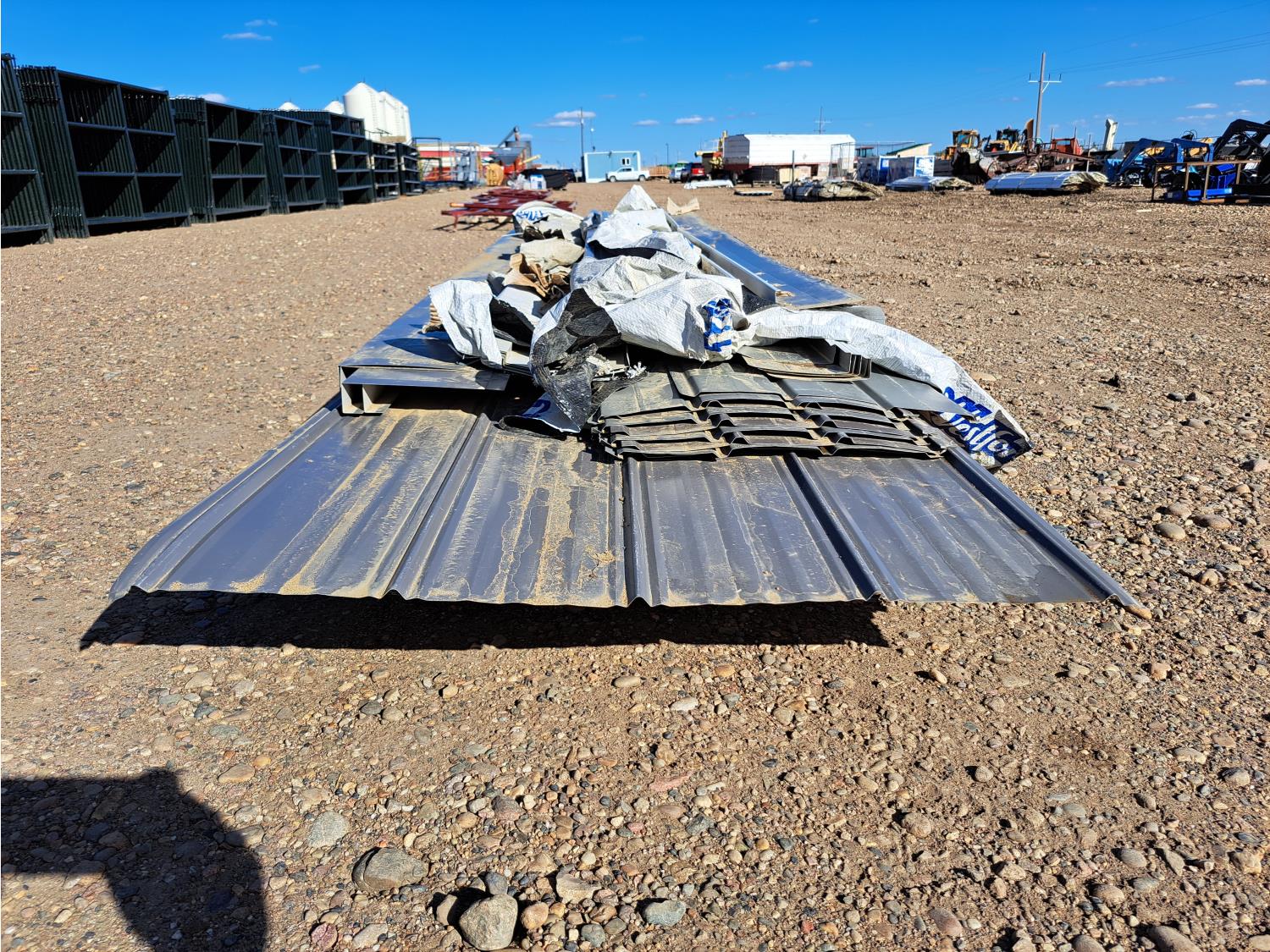 (2) 10 ft green metal roofing flashing, (10) 10 ft white metal starter box flashing, (9) 10 ft grey metal soffit flashing, (327.75 linear feet) brown metal roofing