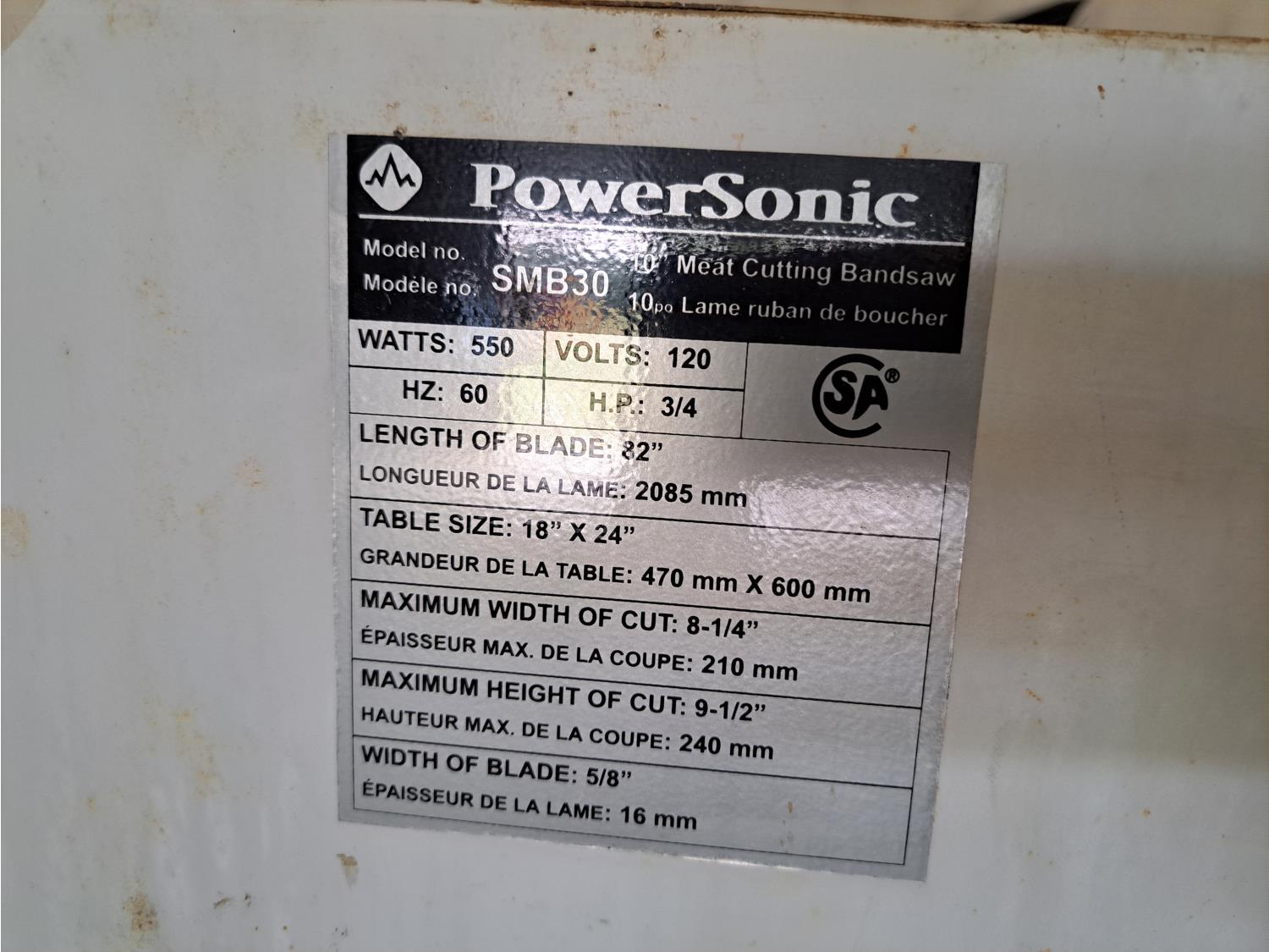 44 Powersonic 3/4 HP Meat Band Saw