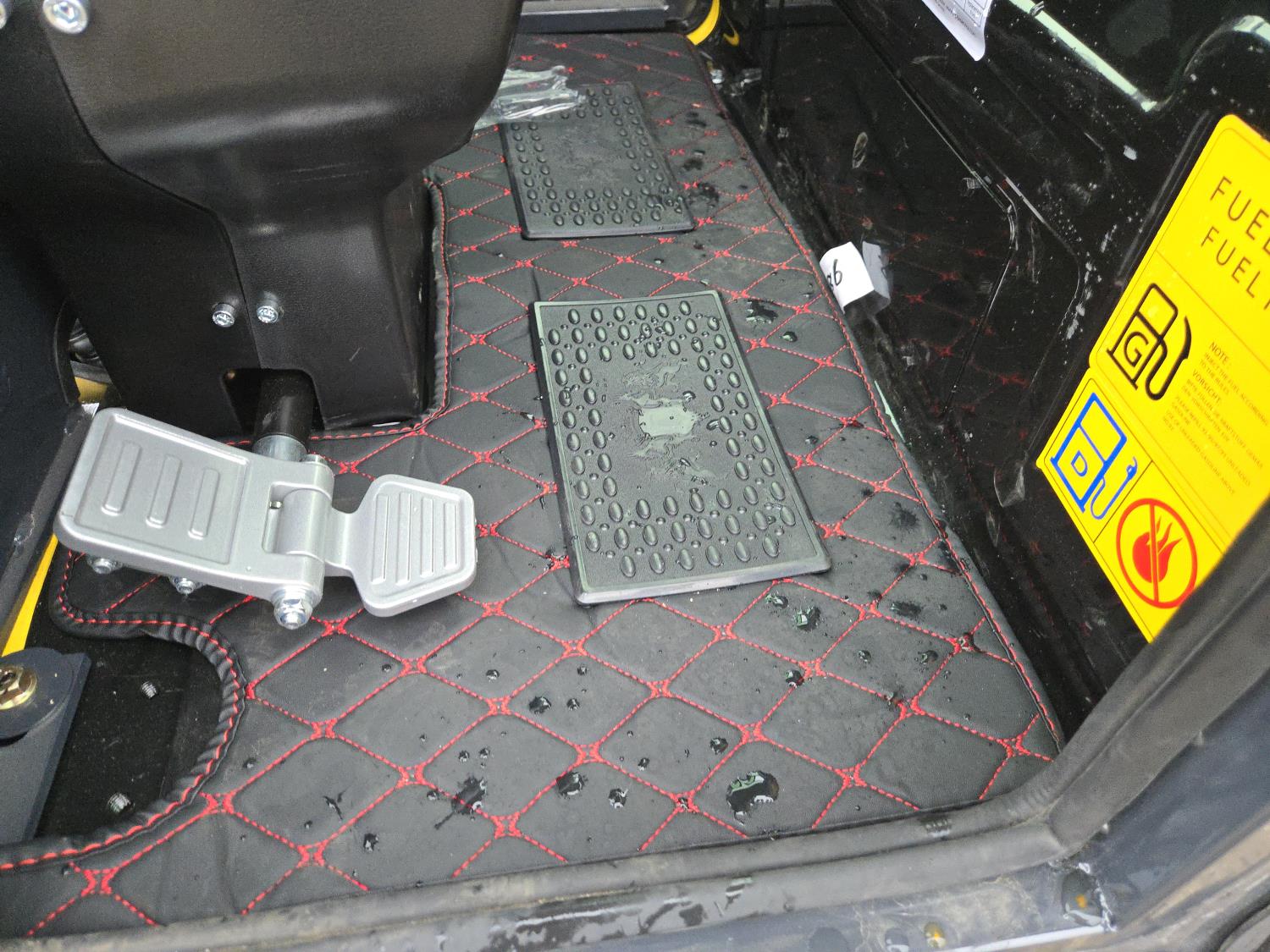 Enclosed cab, gas engine, 12 inch bucket, manual thumb, 2 Ft 6 inch stick, backfill blade, 7 inch rubber tracks