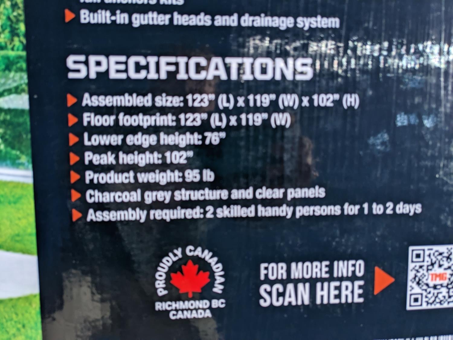 3006 TMG Industrial TMG-LPC10 10 Ft X 10 Ft Aluminum Patio Cover with Clear Panels (Unused)