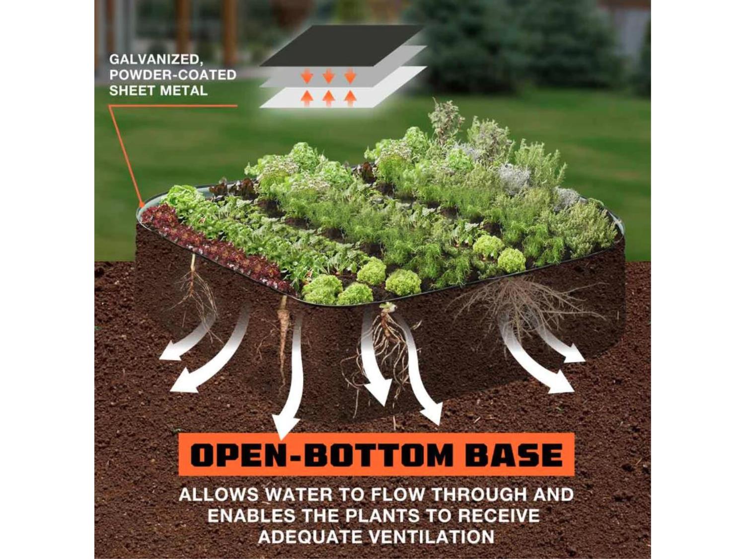 9-in-1 modular design, 18” tall, galvanized & powder coated, rubber edging