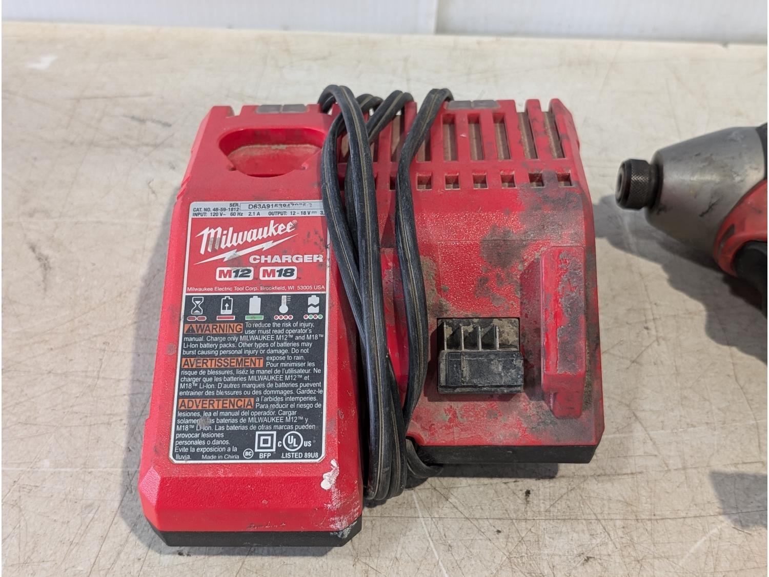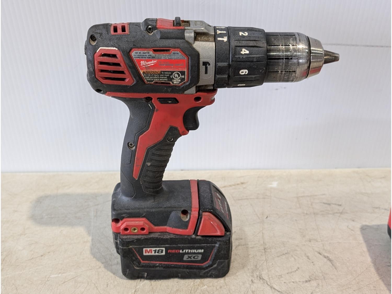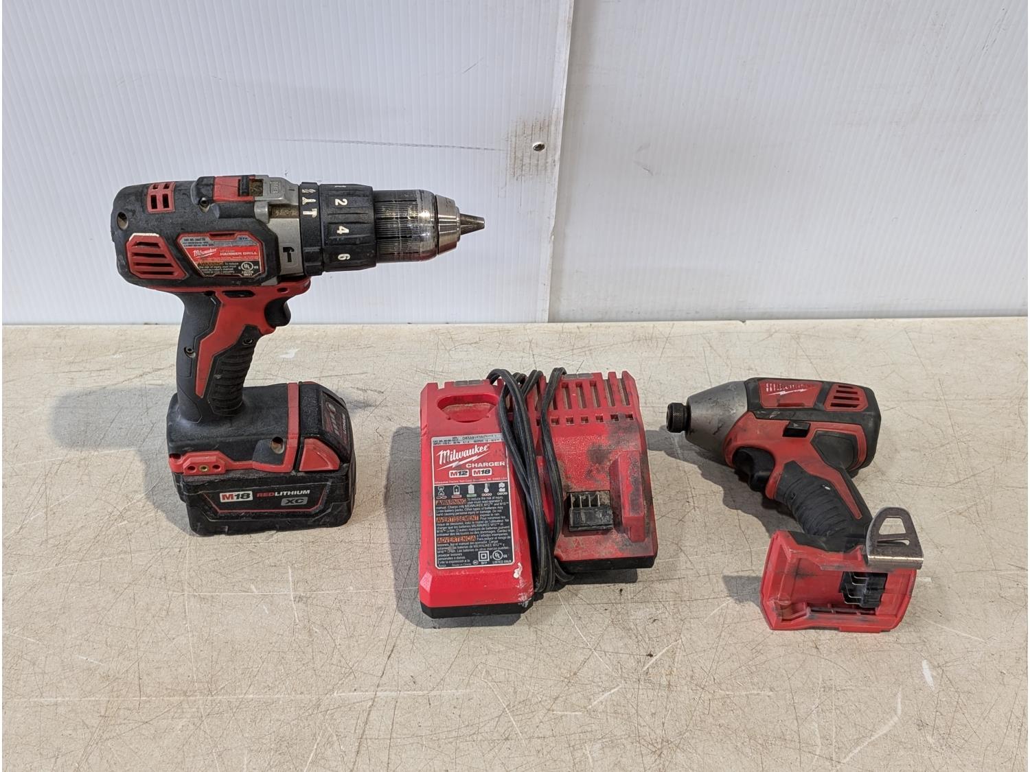 1266 Milwaukee 18V 1/2 Inch Hammer Drill, 1/4 Inch Hex Impact Driver, (1) Battery and Charger