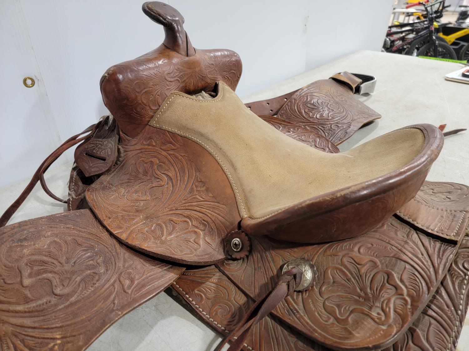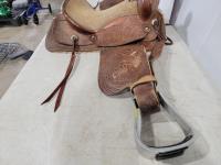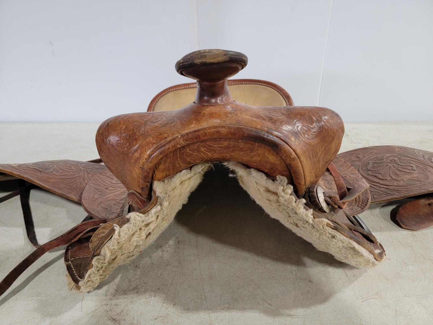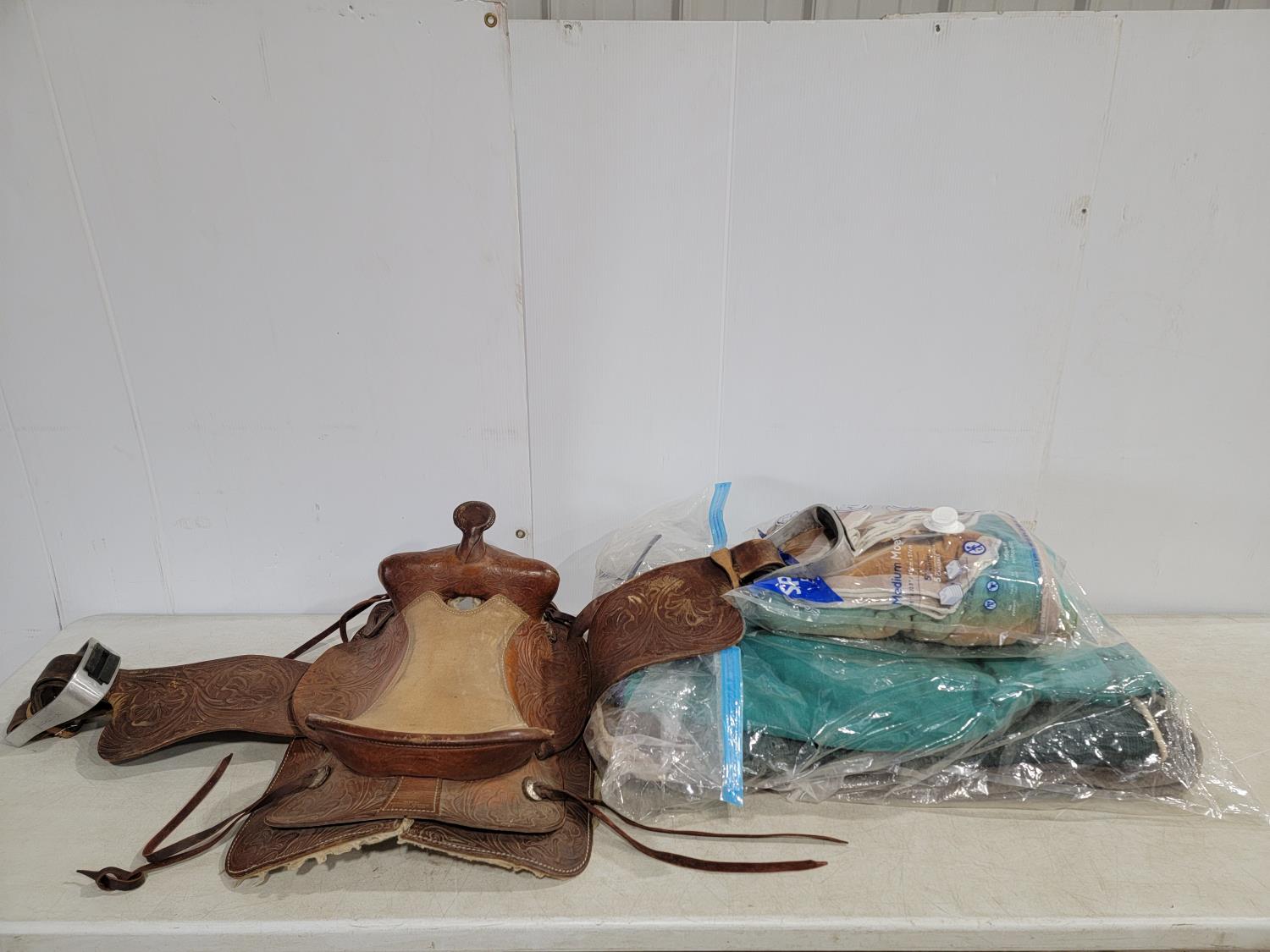 1076 Western Rawhide 15 Inch Saddle with Pad and (2) Blankets
