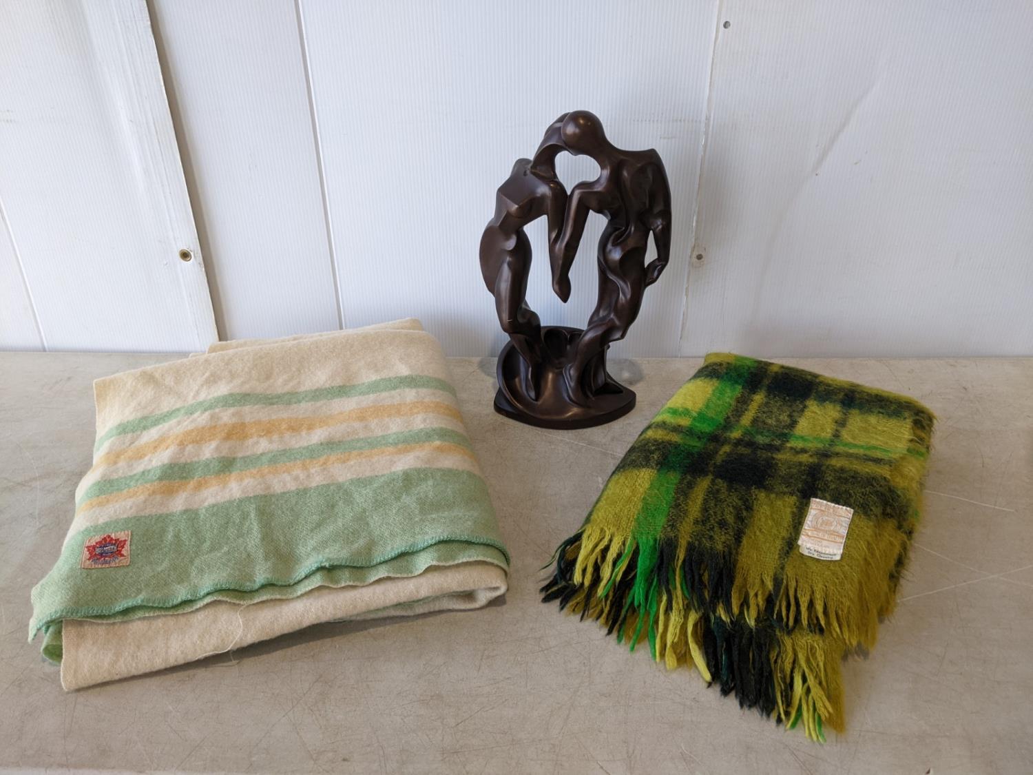 1279 18 Inch Sculpture and (2) Wool Blankets