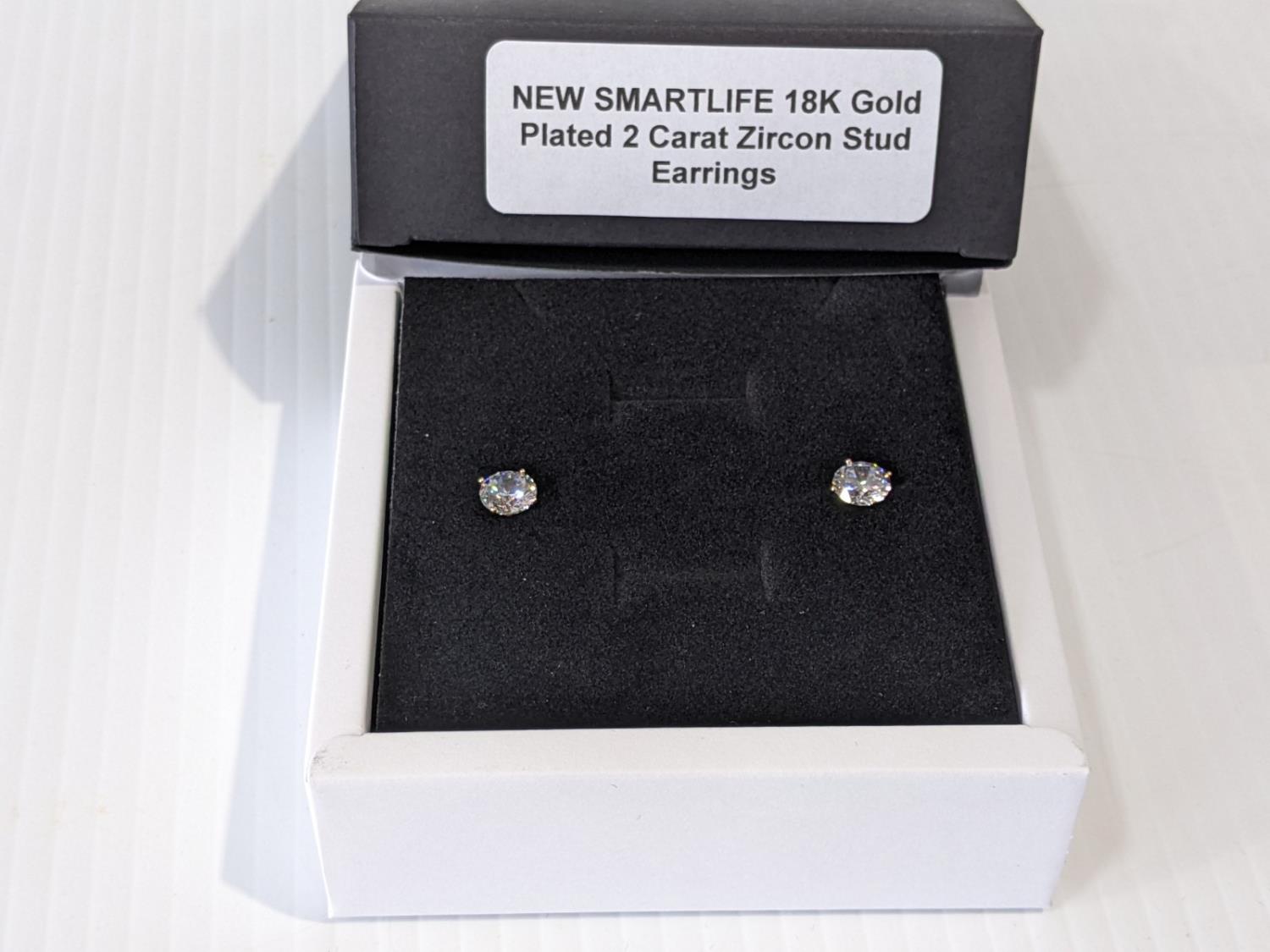 1542 Smartlife 18K Gold Plated 2 Carat Zircon Stud Earrings (Unused)
