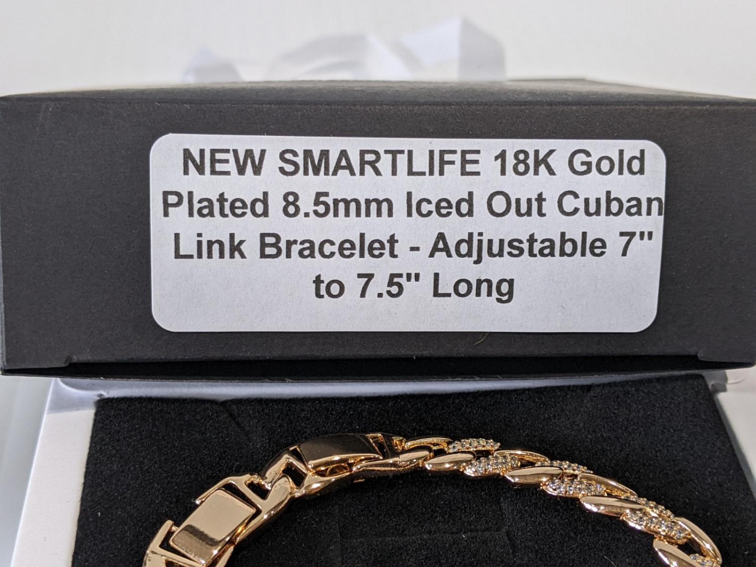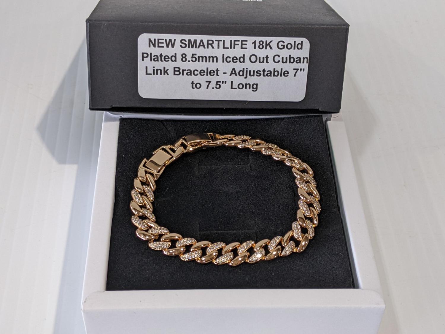 1537 Smartlife 18K Gold Plated 8.5 mm Iced Out Cuban Link Bracelet (Unused)