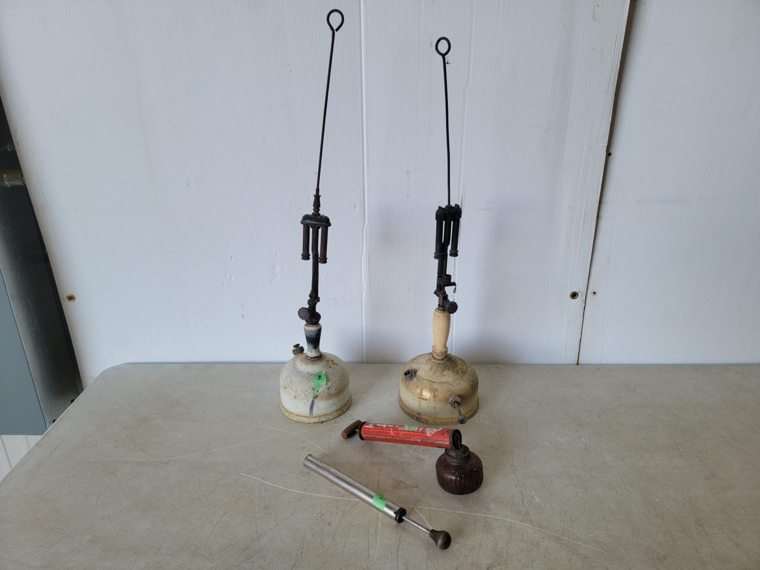 1285 (2) Antique Lanterns, Bug Sprayer and Lantern Pump