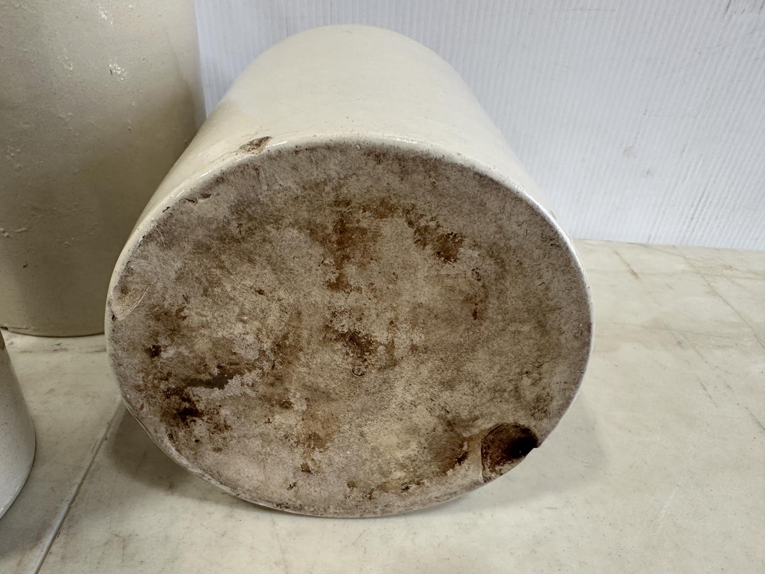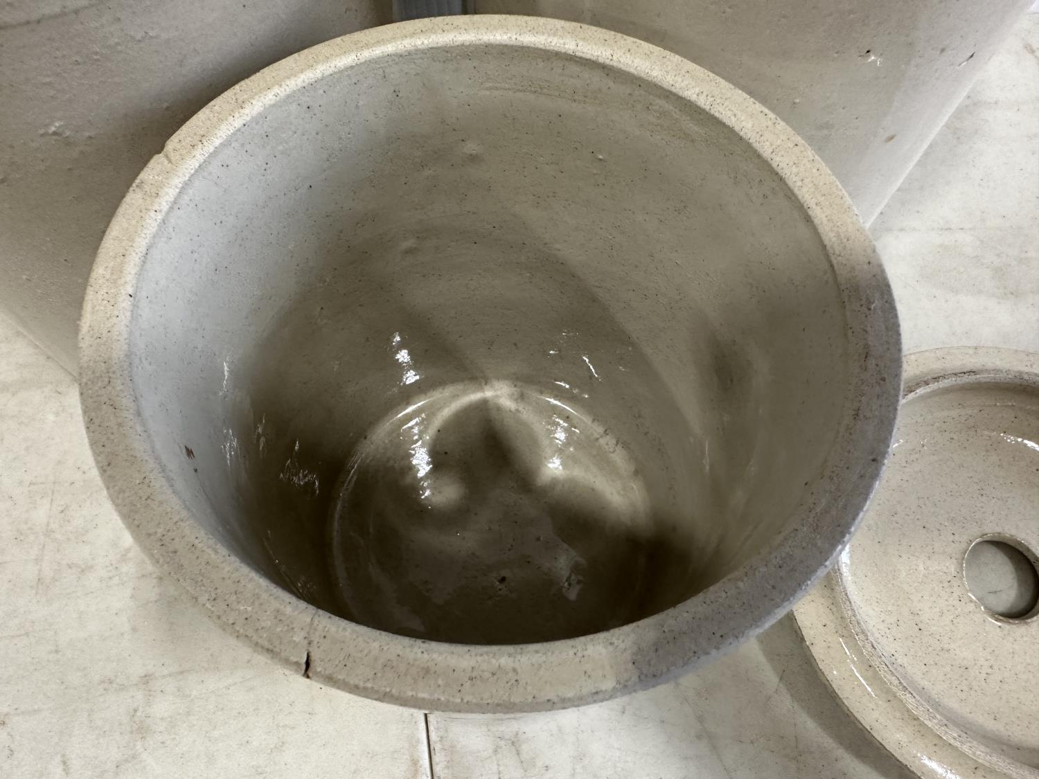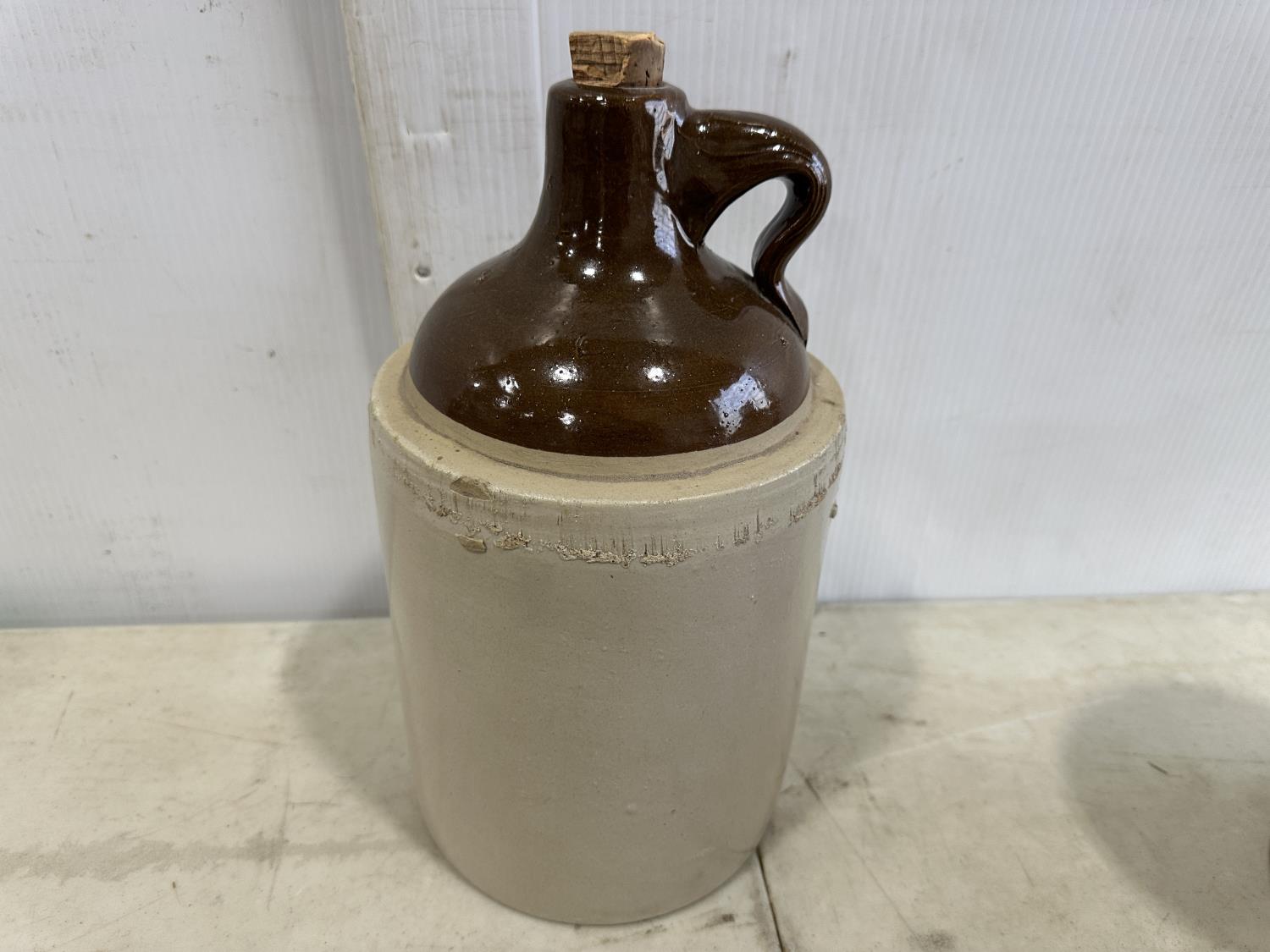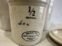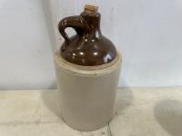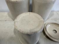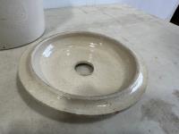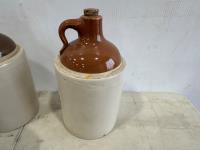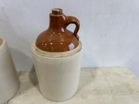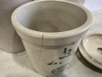1471 (2) Clay Jugs, (1) 1/2Gal Crock, Size 3-4 Butter Churn Lid