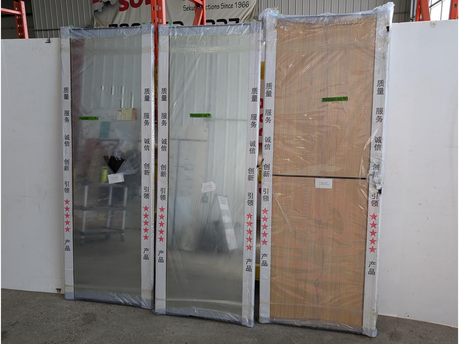 1009 (2) Sliding Mirrored Closet Doors and (1) Sliding Wood Veneer Closet Door (Unused)