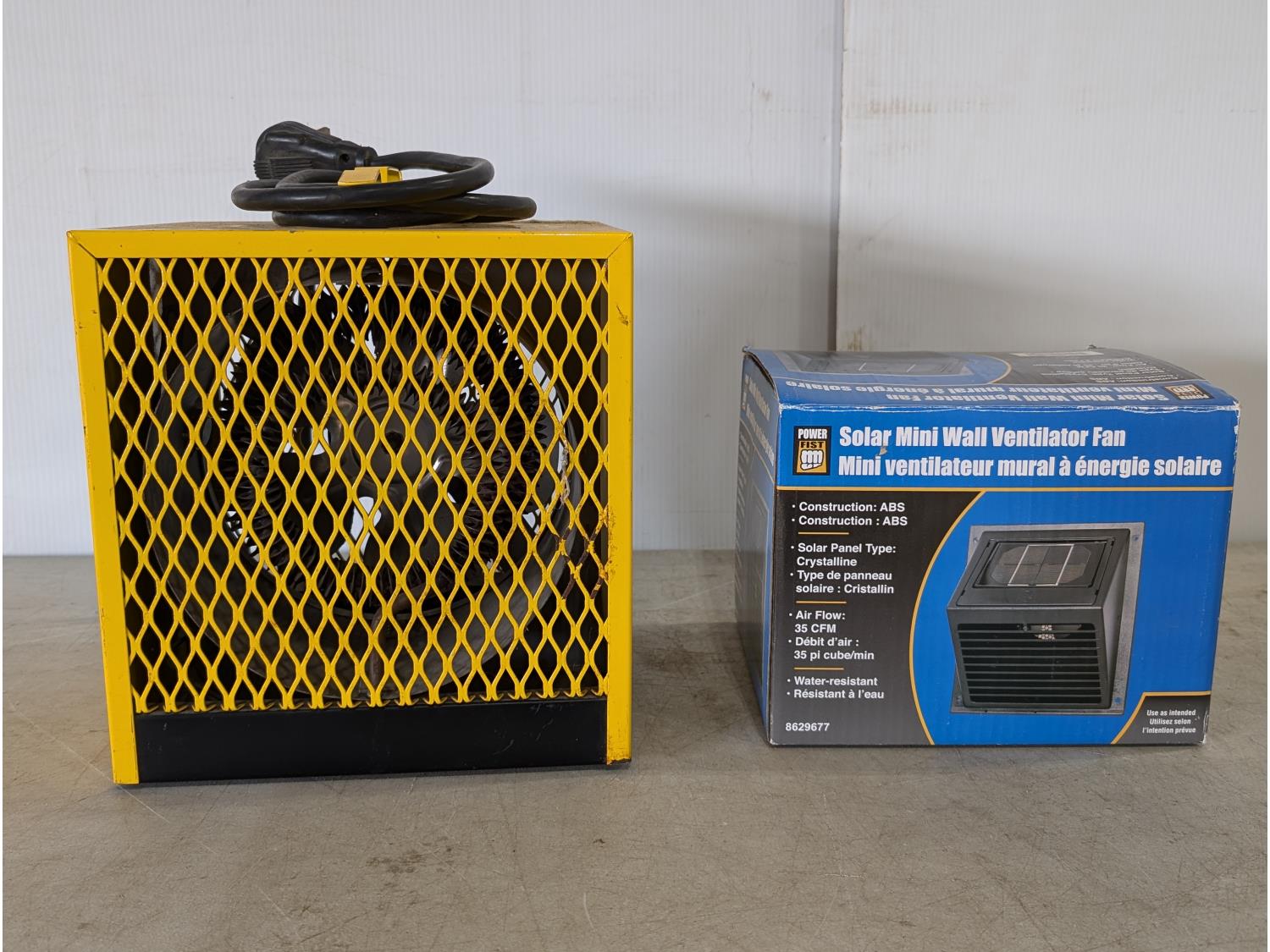 1481 220V Heater and Powerfist Solar Mini Wall Ventilator Fan