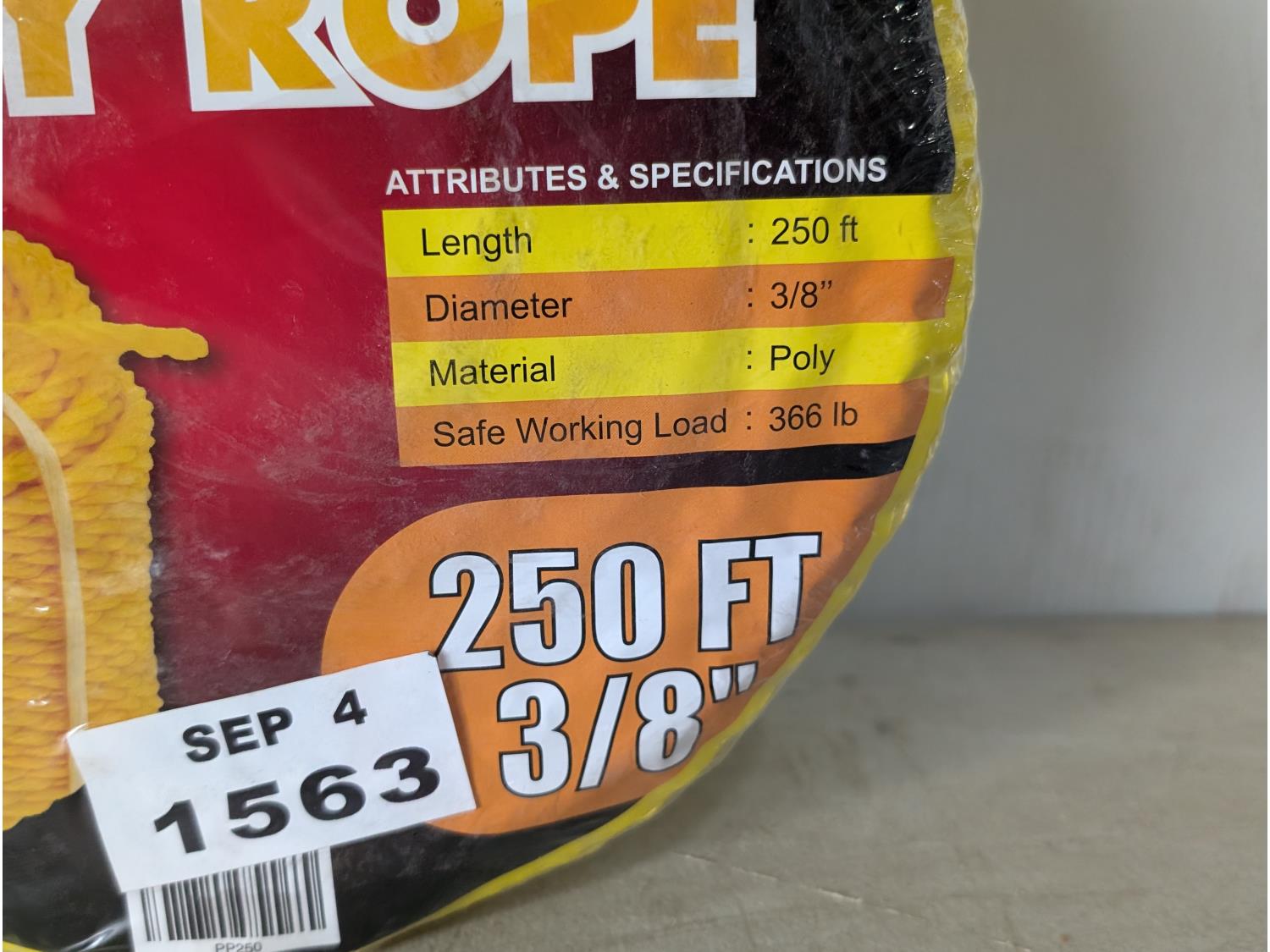 1371 250 Ft X 3/8 Inch Yellow Poly Rope (Unused)