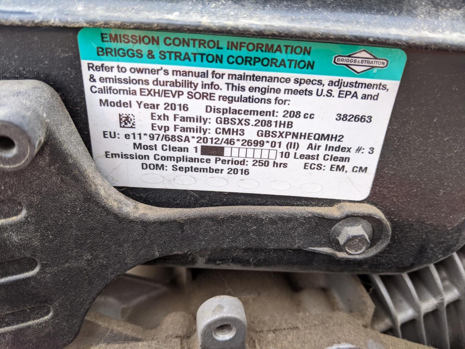 Briggs & Stratton 950 series, 208 cc