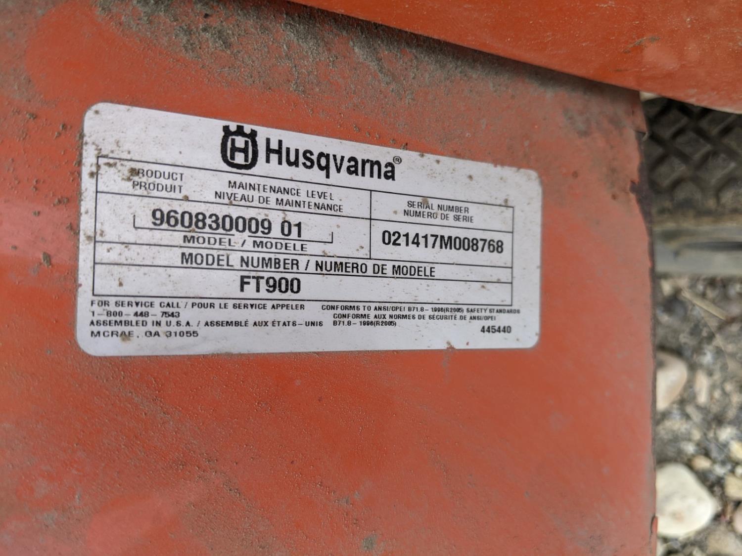 1558 Husqvarna FT 900 26 Inch Gas Rototiller (Inoperable)