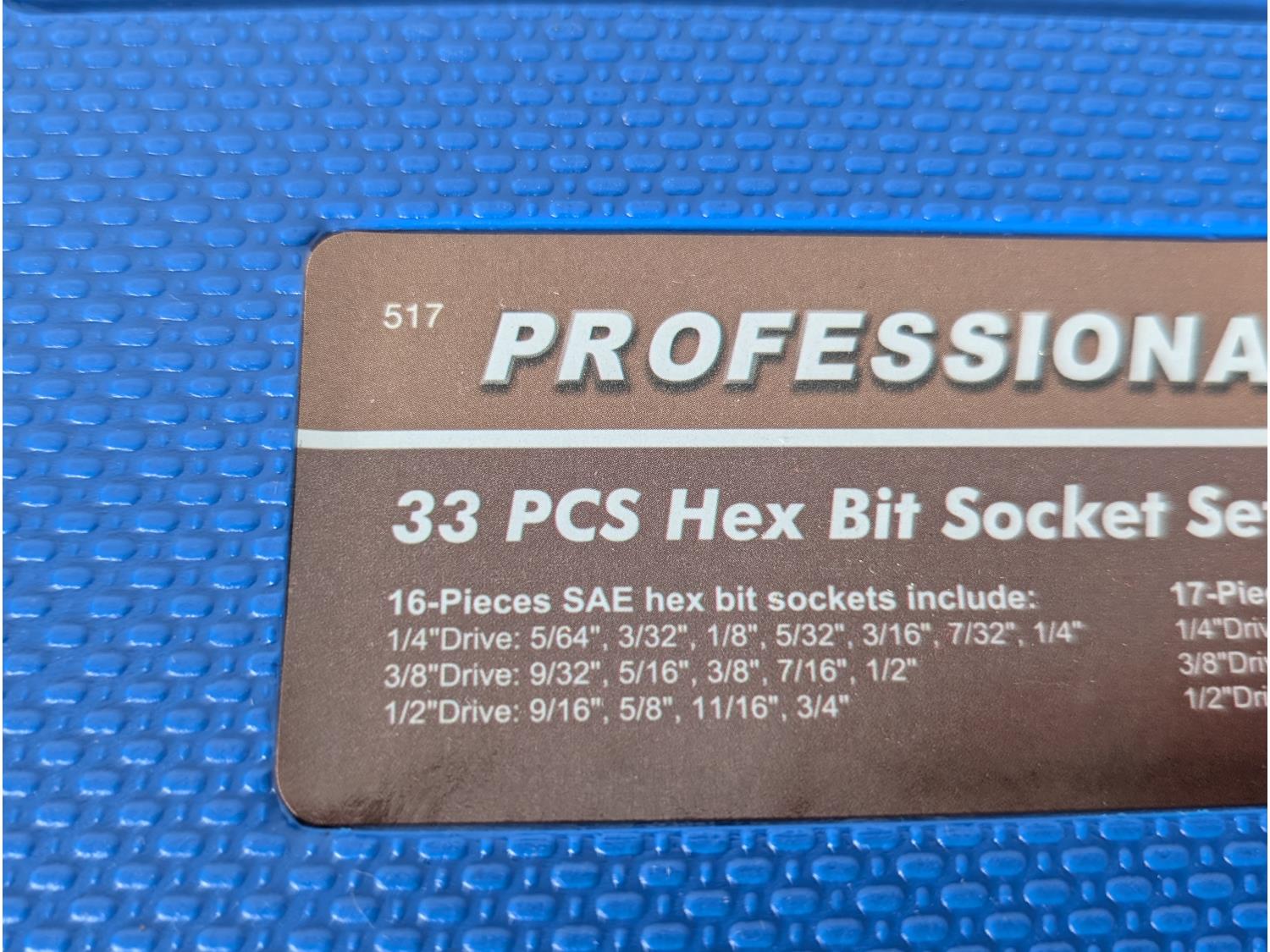1315 Professional Tools 33 Piece Hex Bit Socket Set (Unused)