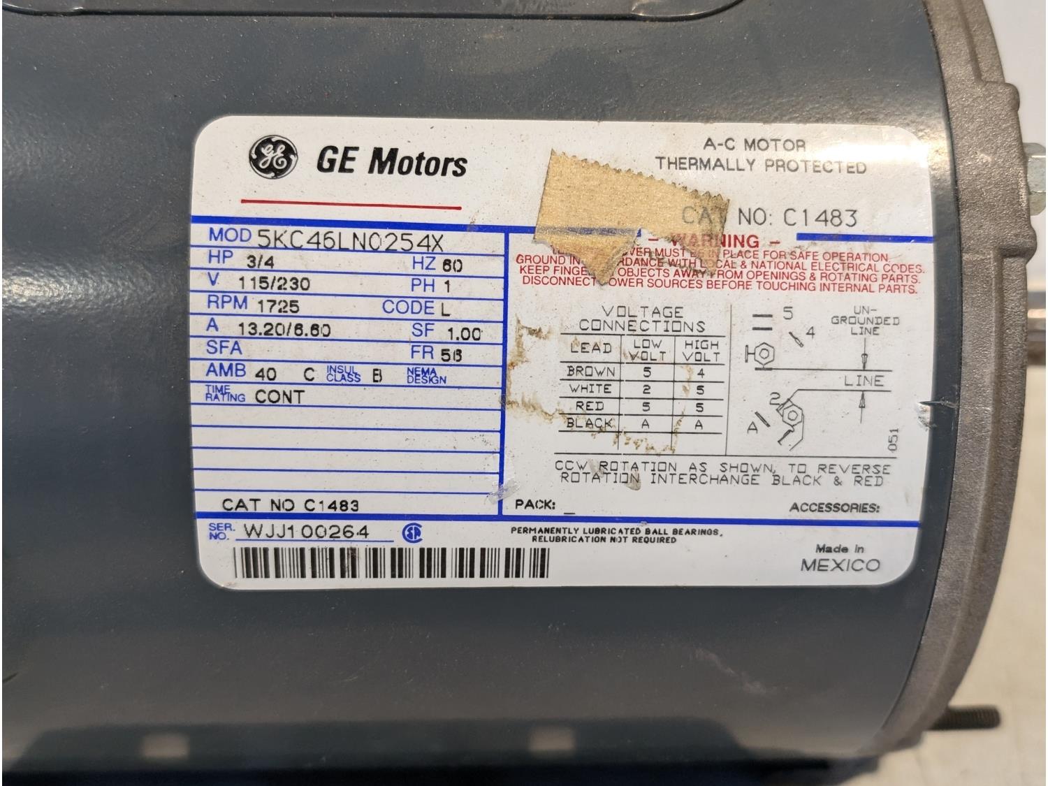 1282 GE 3/4 HP Motor and GE 1/4 HP Motor