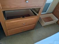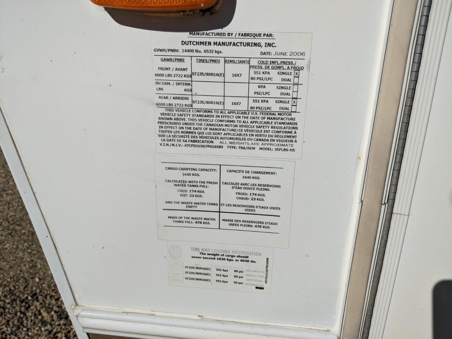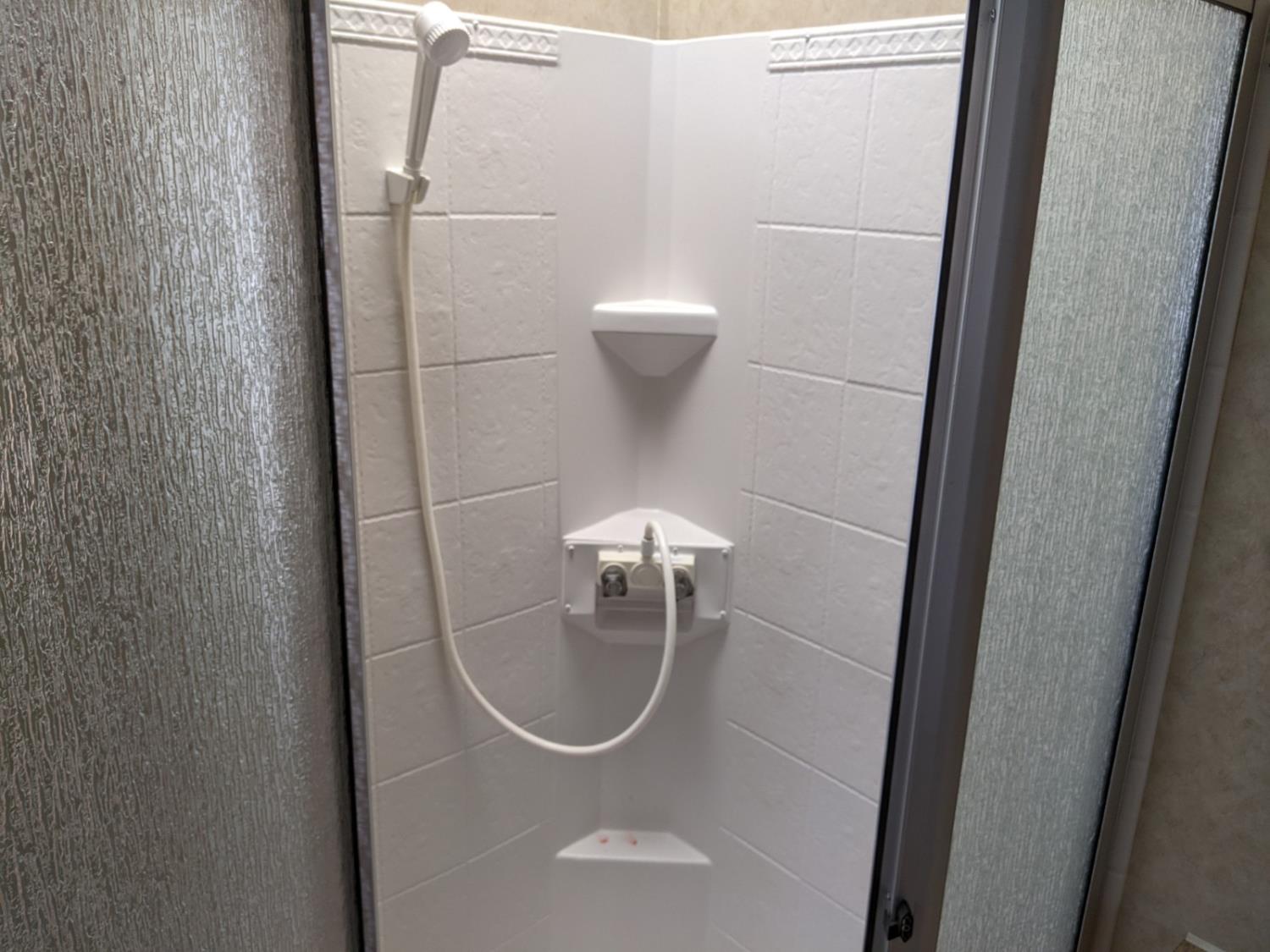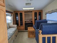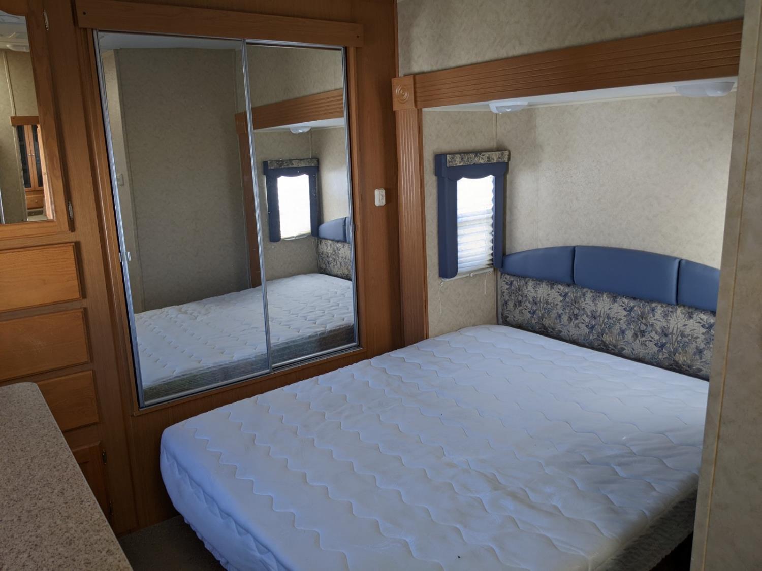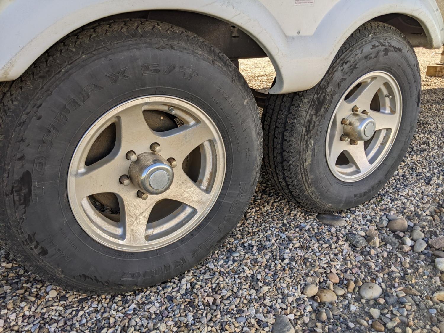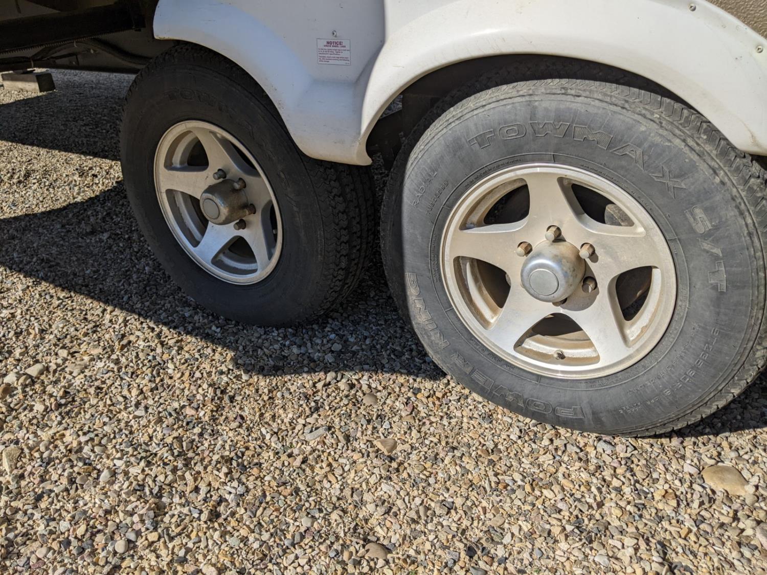 Sleeps 6, stove, fridge, microwave, full bath, master bedroom, A/C, 3 slides, manual awning, power levelling jacks, spring suspension, electric brakes, no TV, one drawer broken in the bedroom. Bought by elderly gentleman and has never been slept in or had any water. , 235/80R16 tires