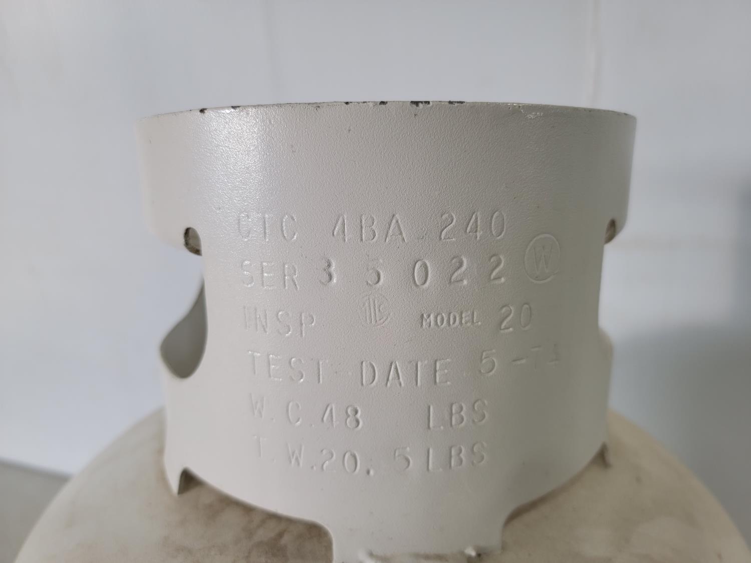 1119 (4) 20L Diesel Jerry Cans, (2) 20L Gas Jerry Cans and (1) 20 lb Propane Tank