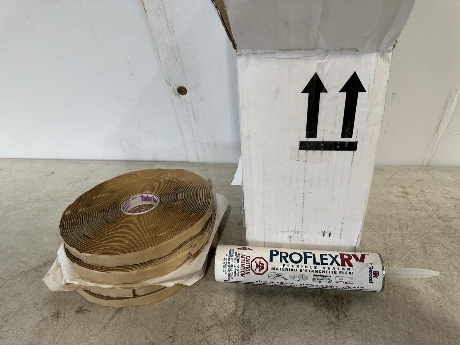 1302 (5) Tubes of RV Sealant and (4) Rolls of 1/2 Inch Tacky Tape (Unused)
