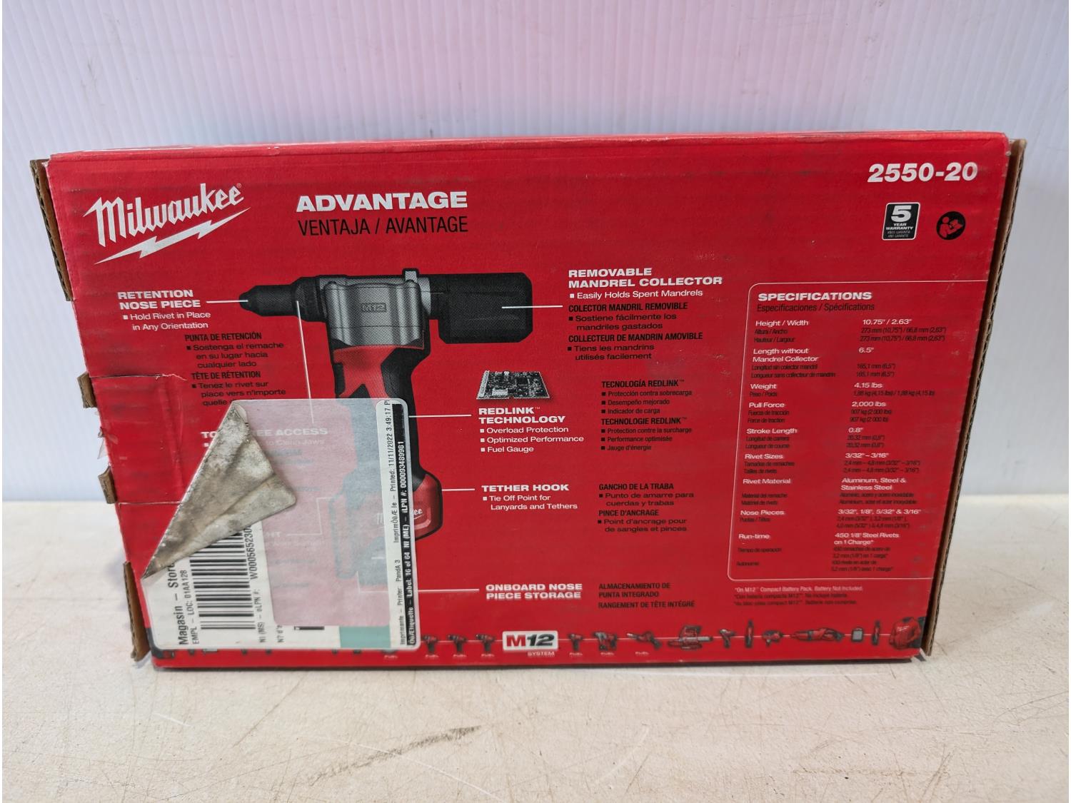 1260 Milwaukee M12 Rivet Tool