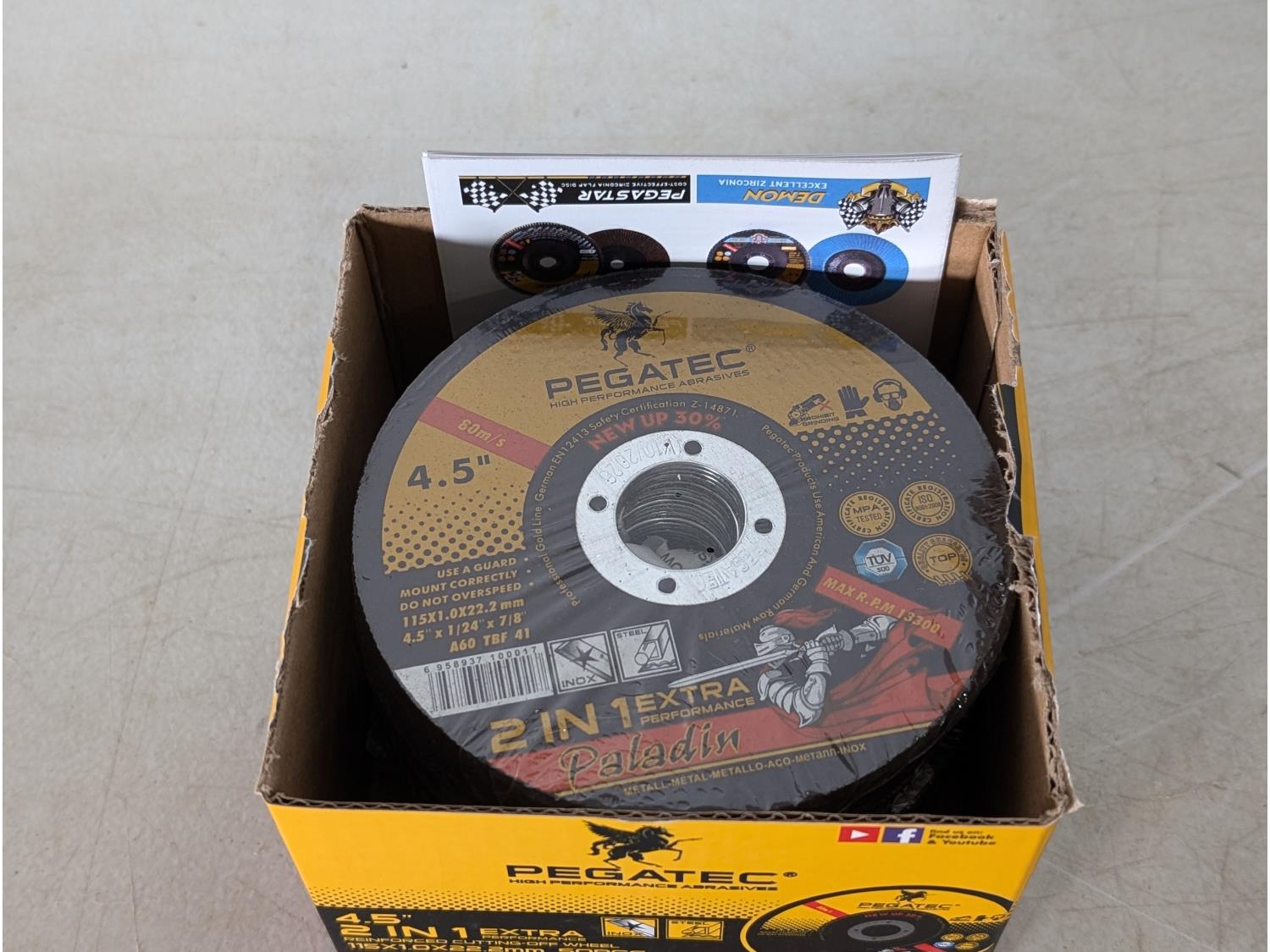 1332 Pegatec 50 Piece 2-in-1 4.5 Inch Cut Off Wheels (Unused)