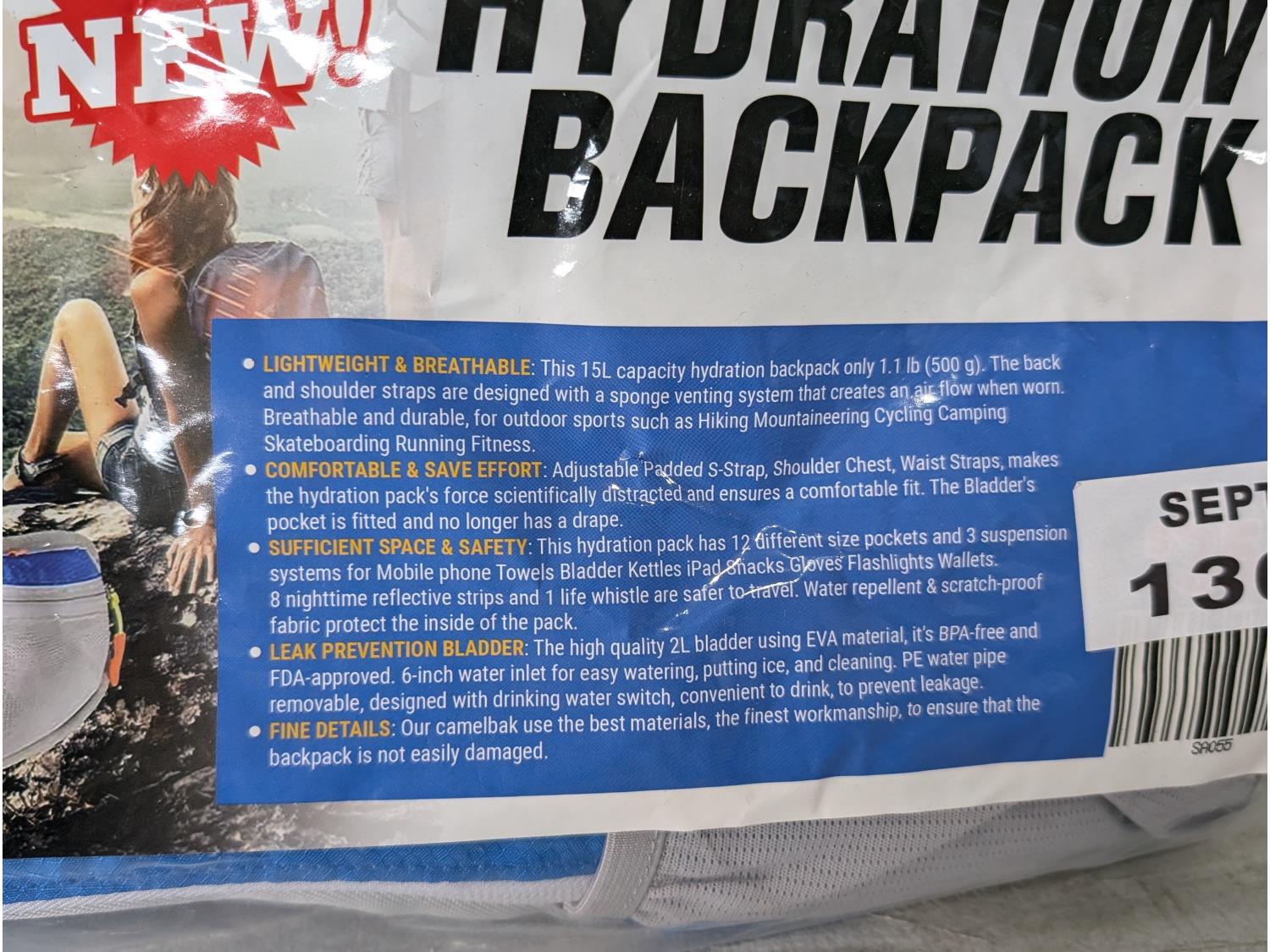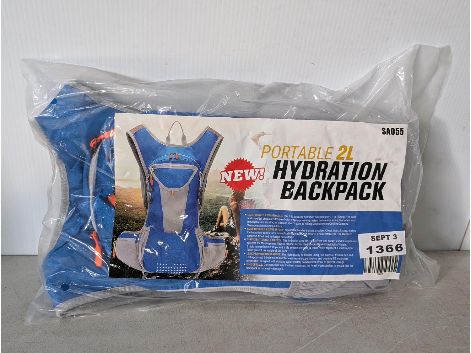 1369 Portable 2L Hydration Backpack (Unused)