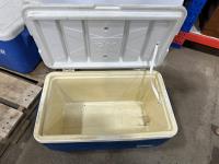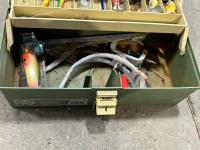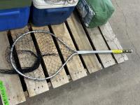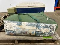(2) coolers, tackle box with contents, 6 person tent, 10 lb anchor, net, (2) collapsible fishing rods