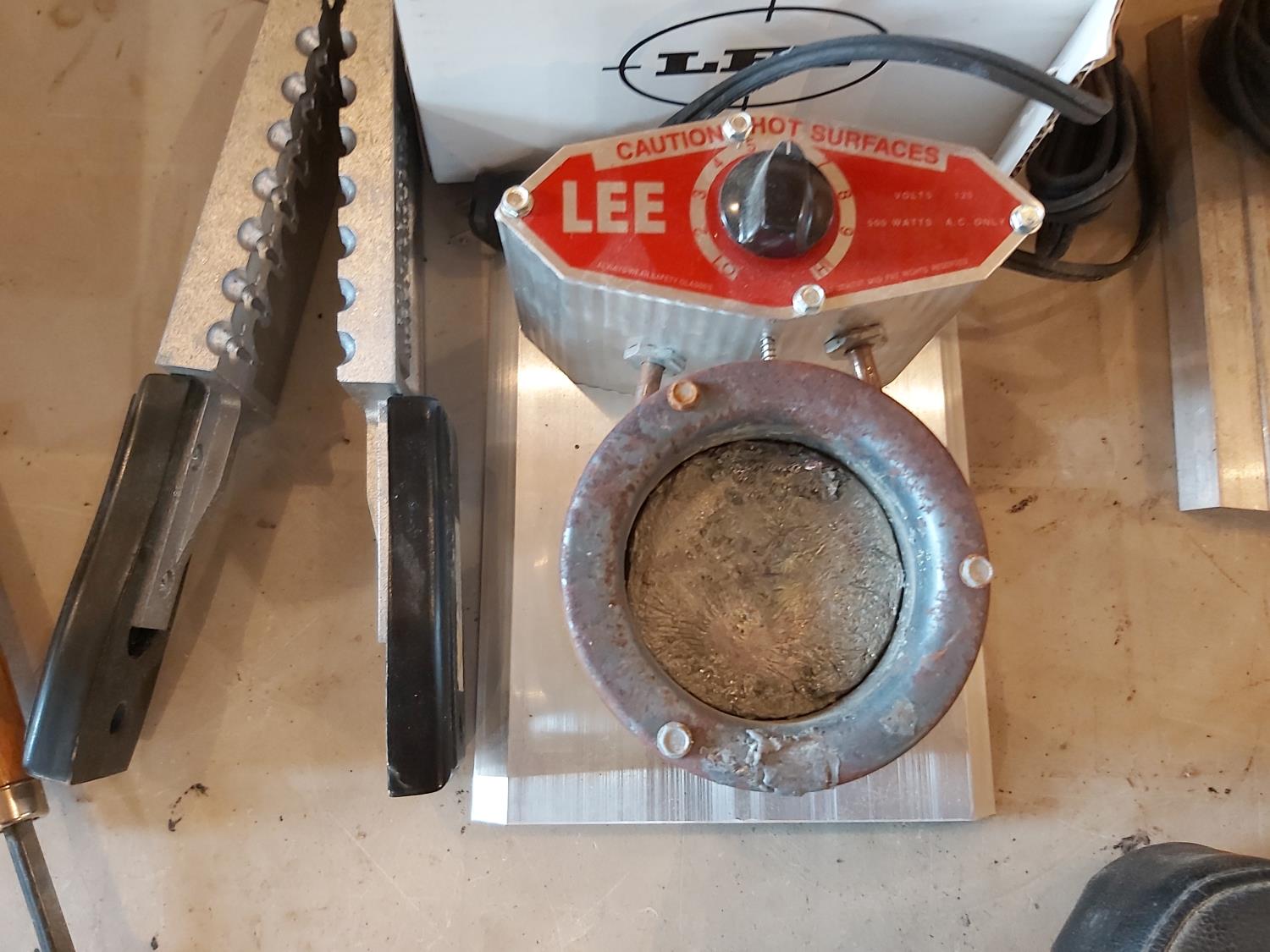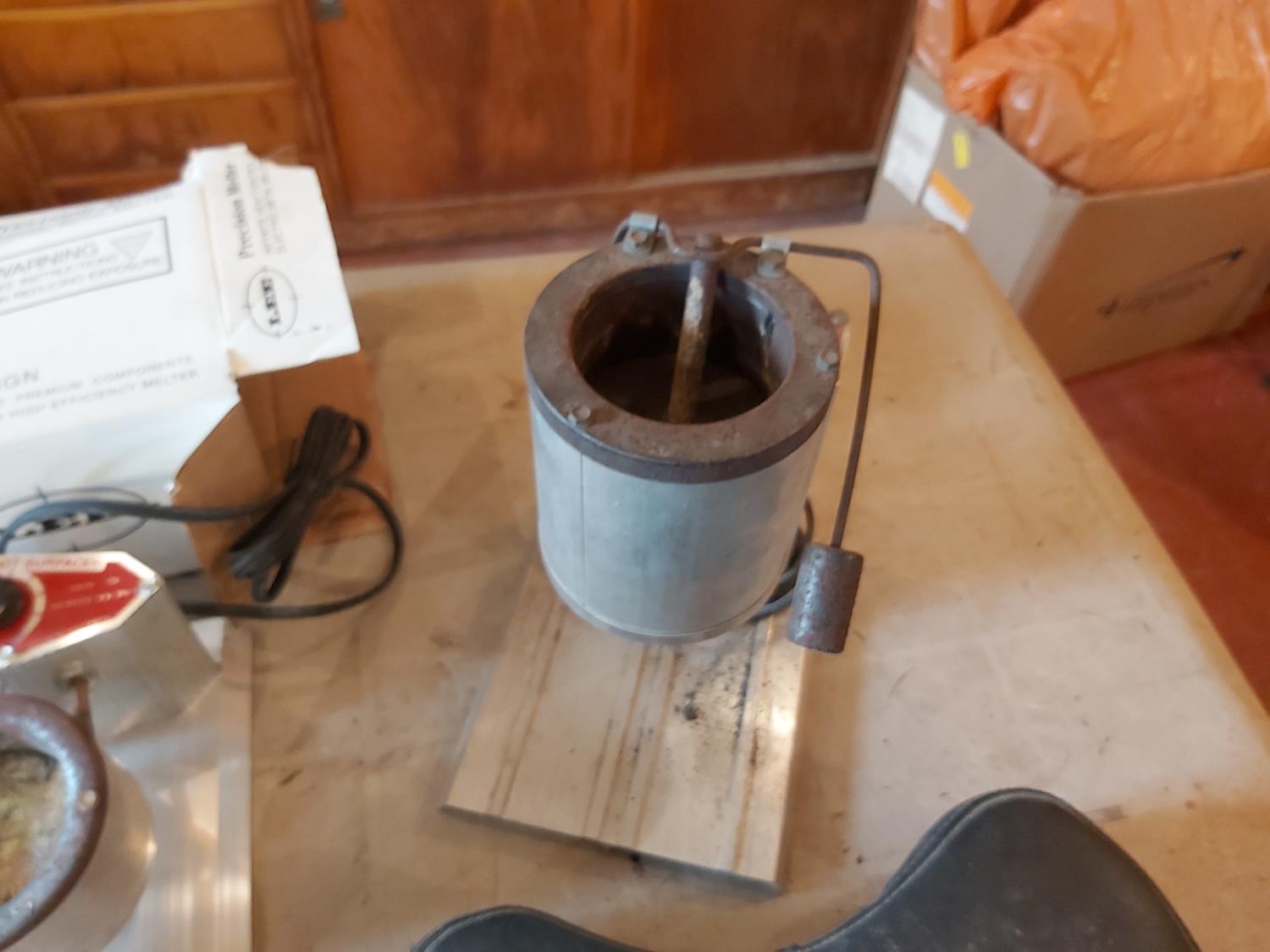 (2) rod holders, small seat, (2) lee electric metal melters, weight mold