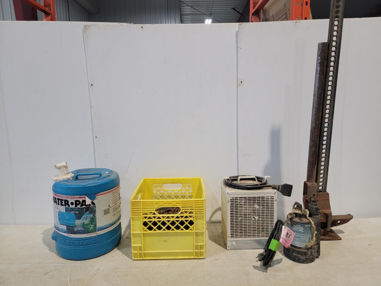 Jack-all, 1/4 HP submersible pump, portable heater, chains, 20 L Water Pak
