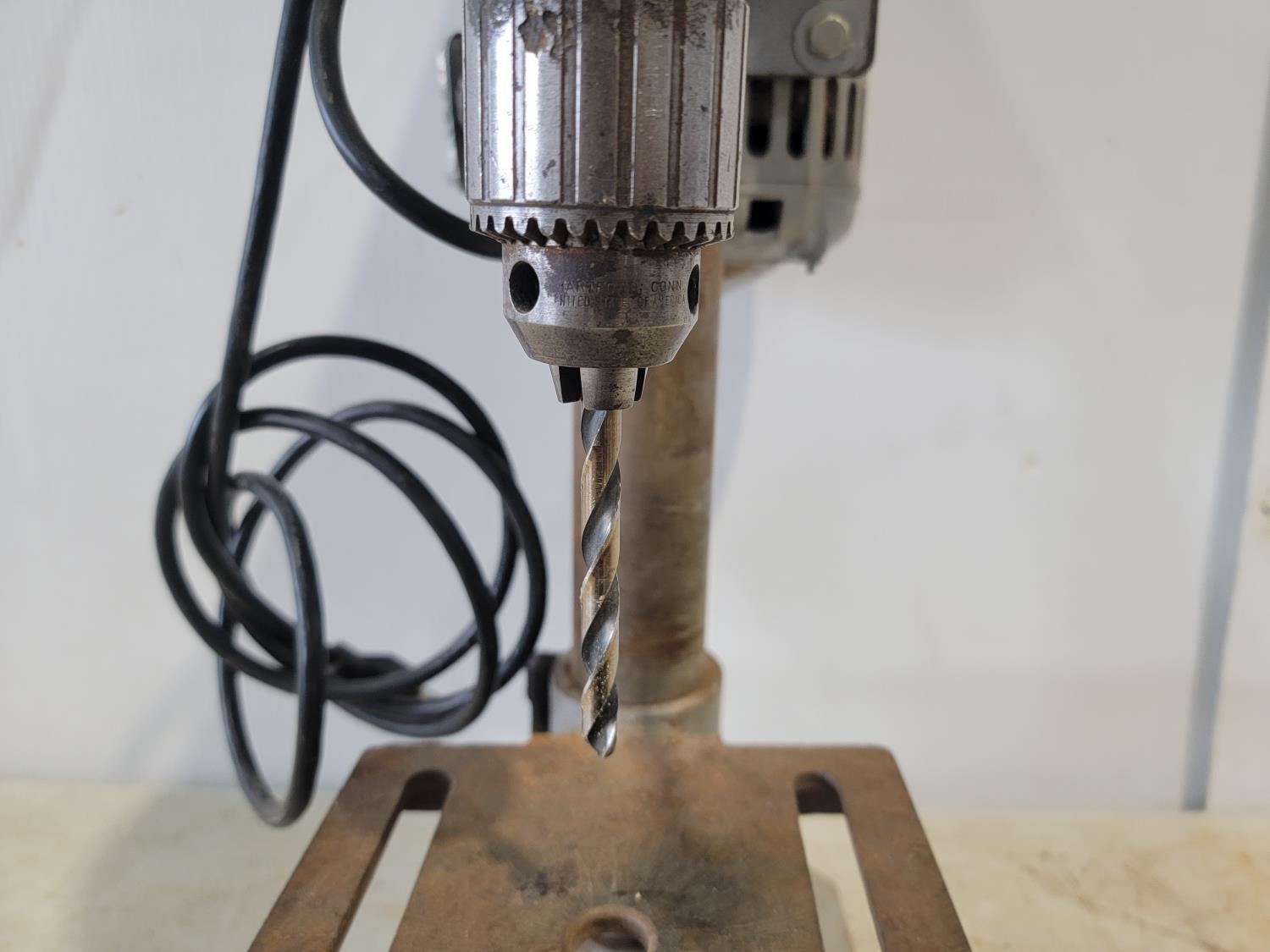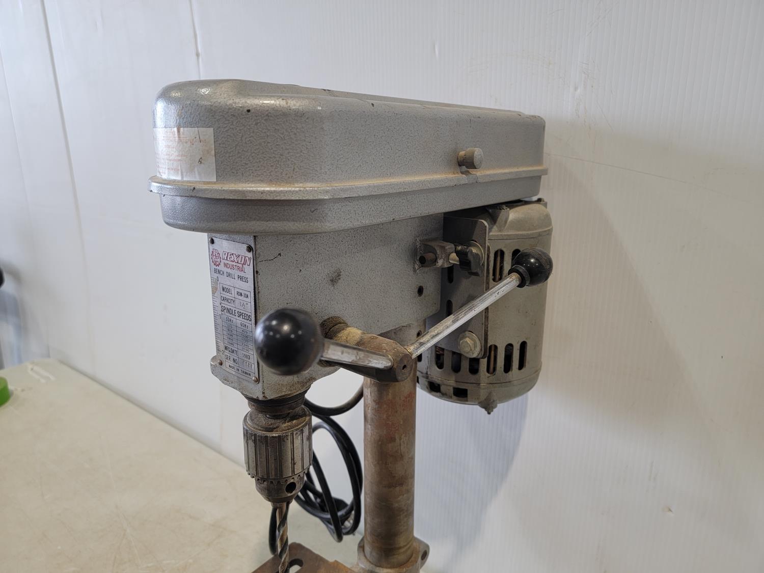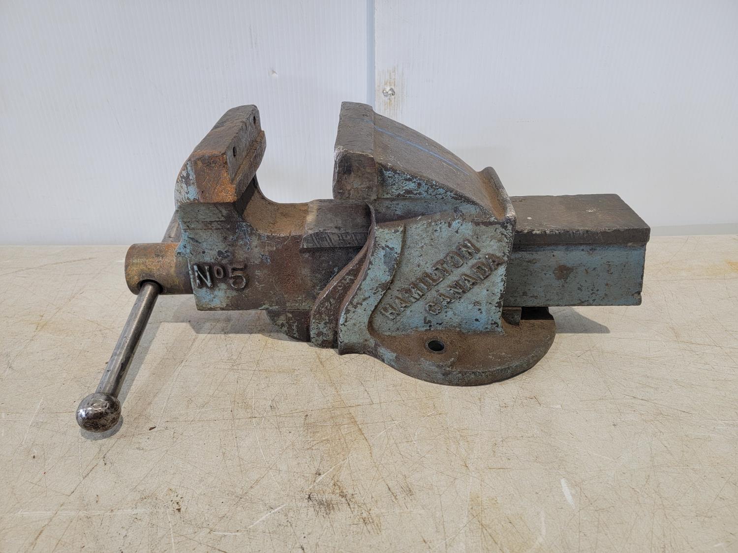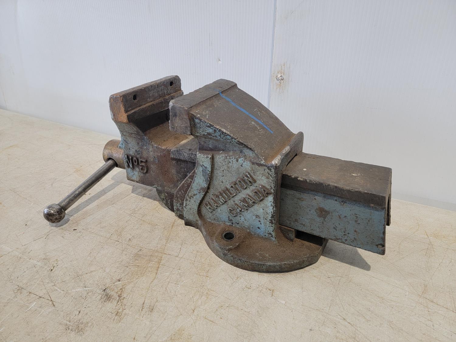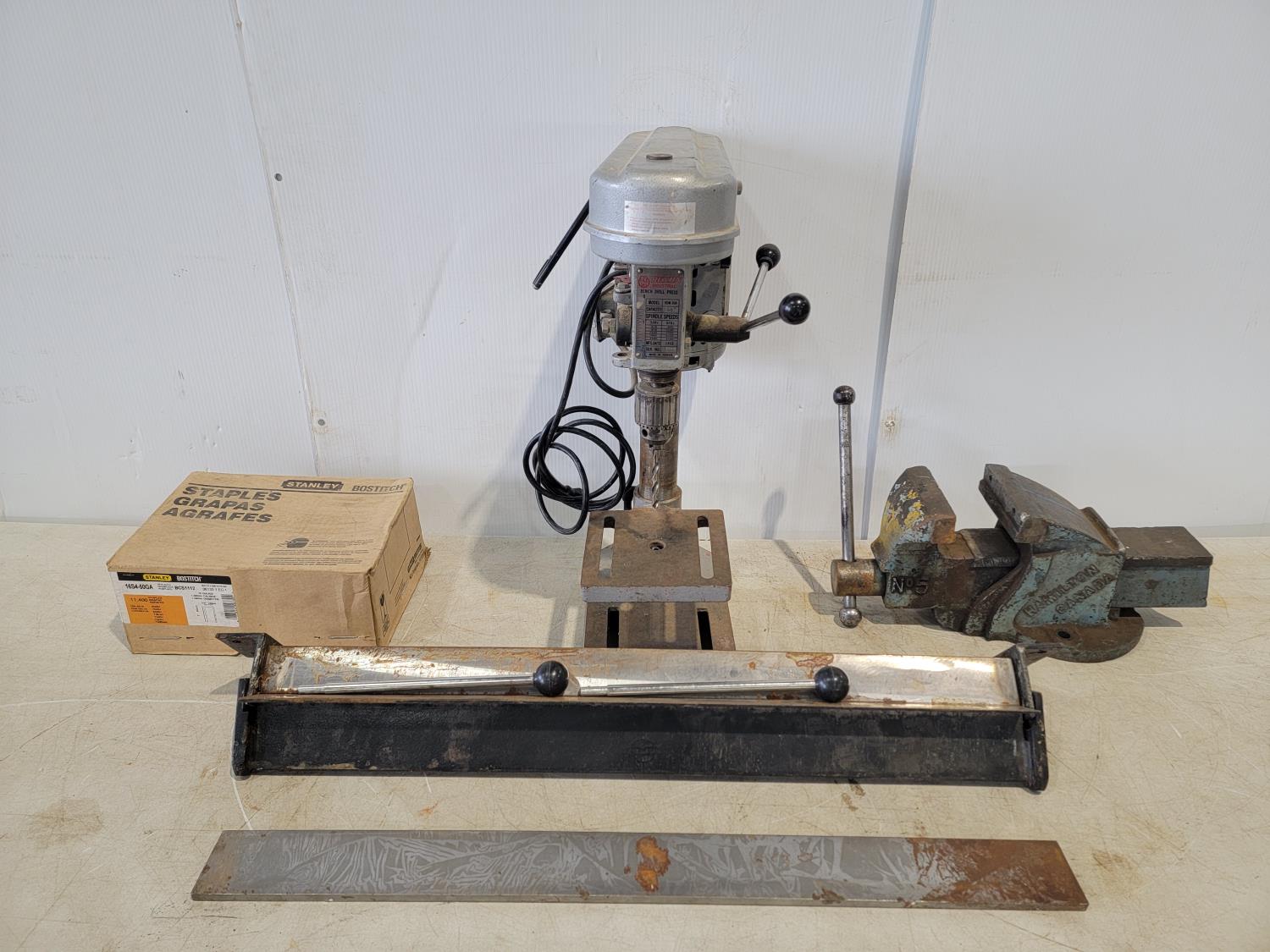 No 5 Hamilton bench vise, Rexon 1/2 inch bench drill press, Stanley 16 ga staples