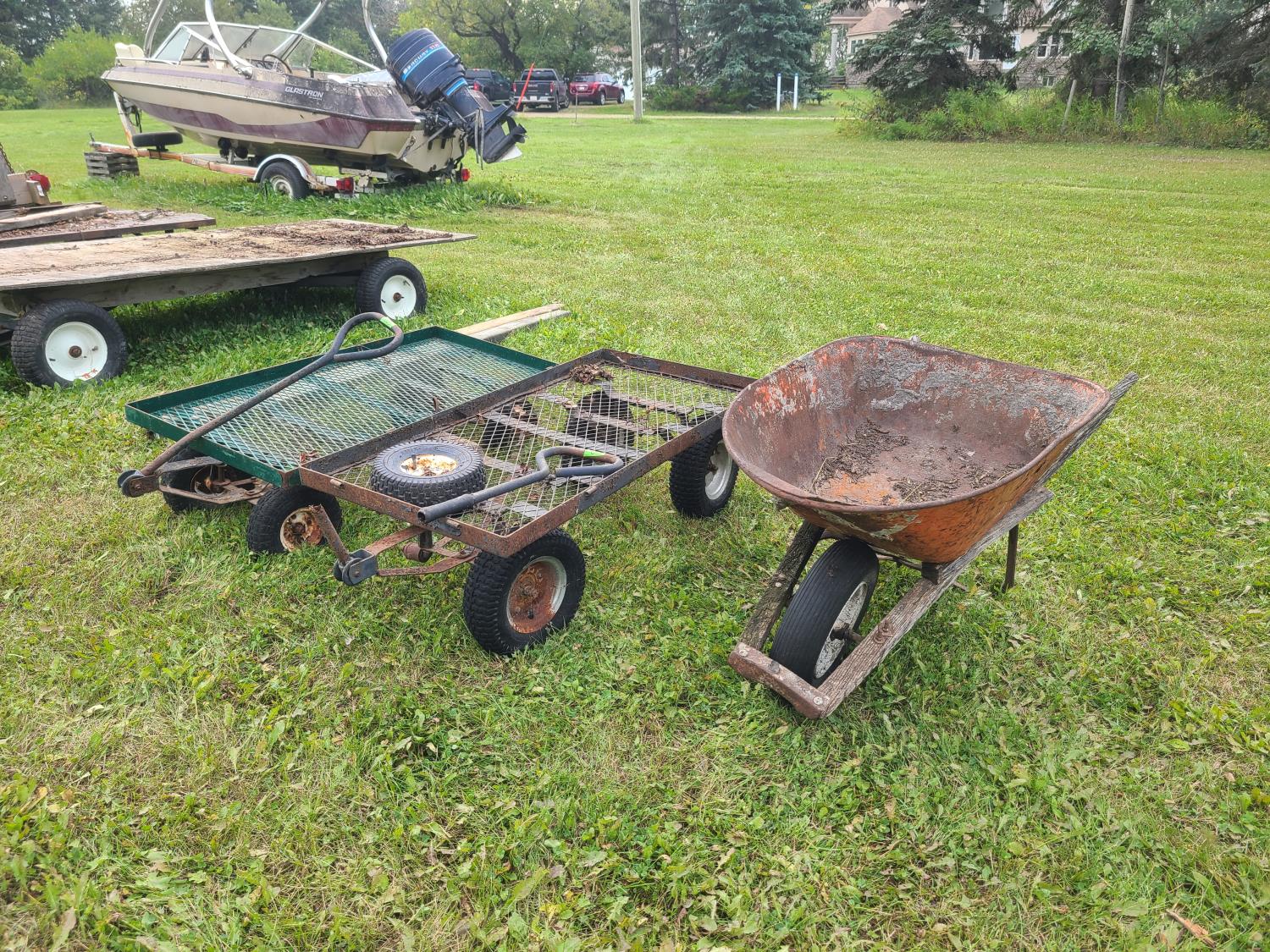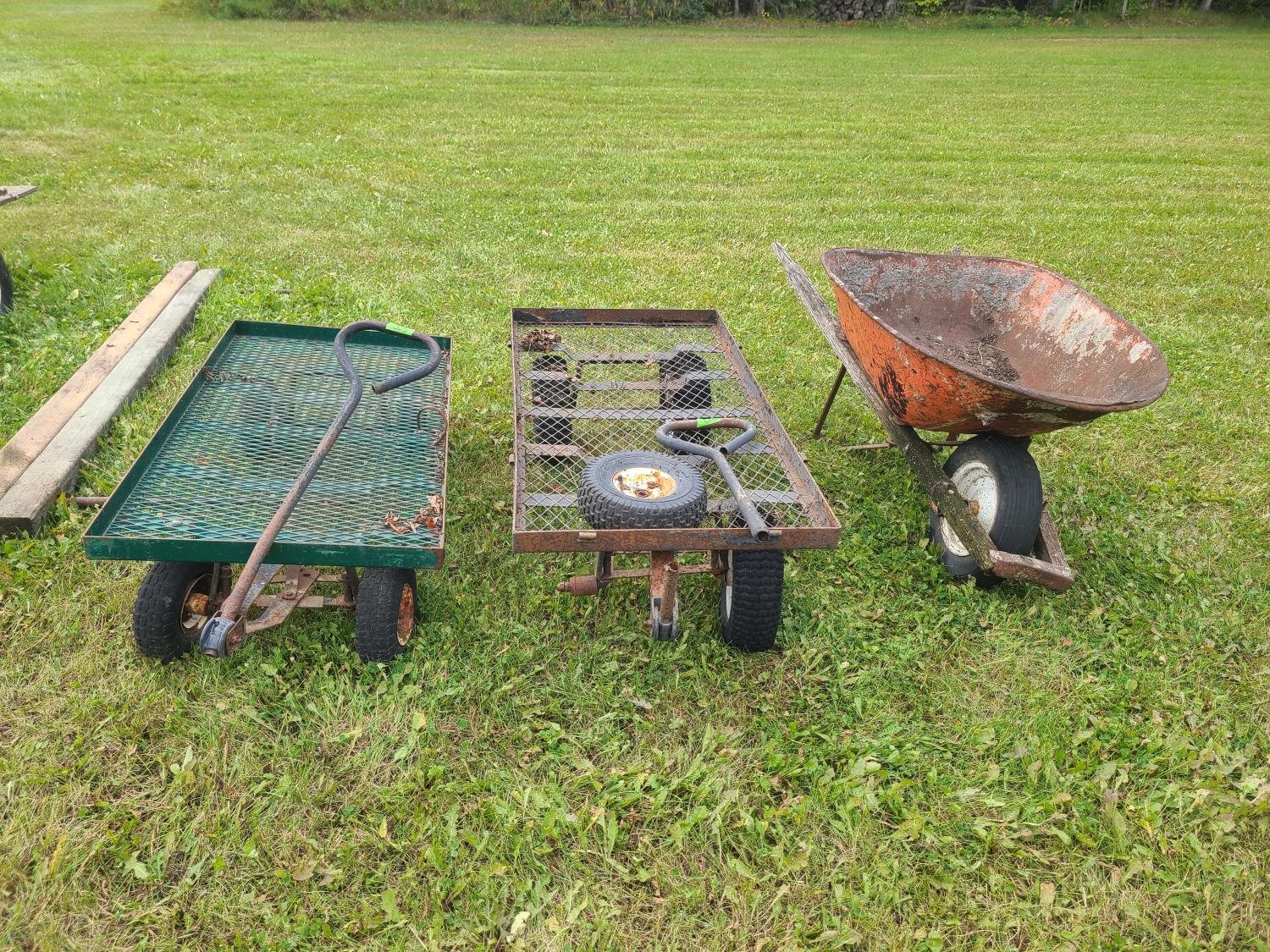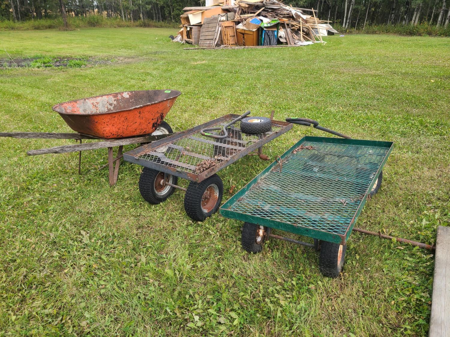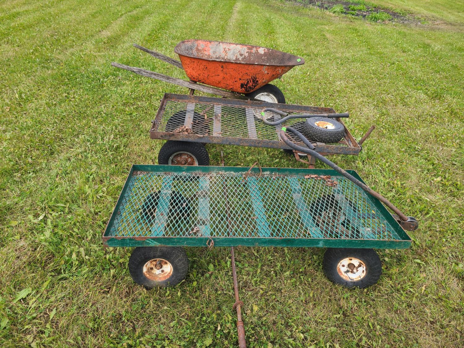 green wagon is siezed, black wagon needs wheel and handle put back on