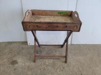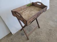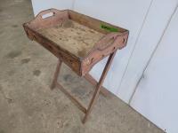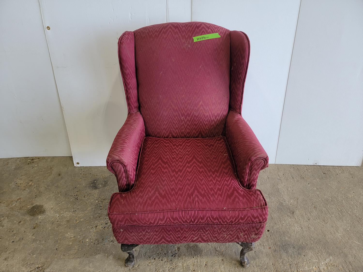 1252 Red Wingback Chair and Wooden Tray with Folding Stand
