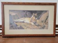 1183 Wooden Storage Bench and Isabel Levesque Solitary Splendor Cougar Framed Print