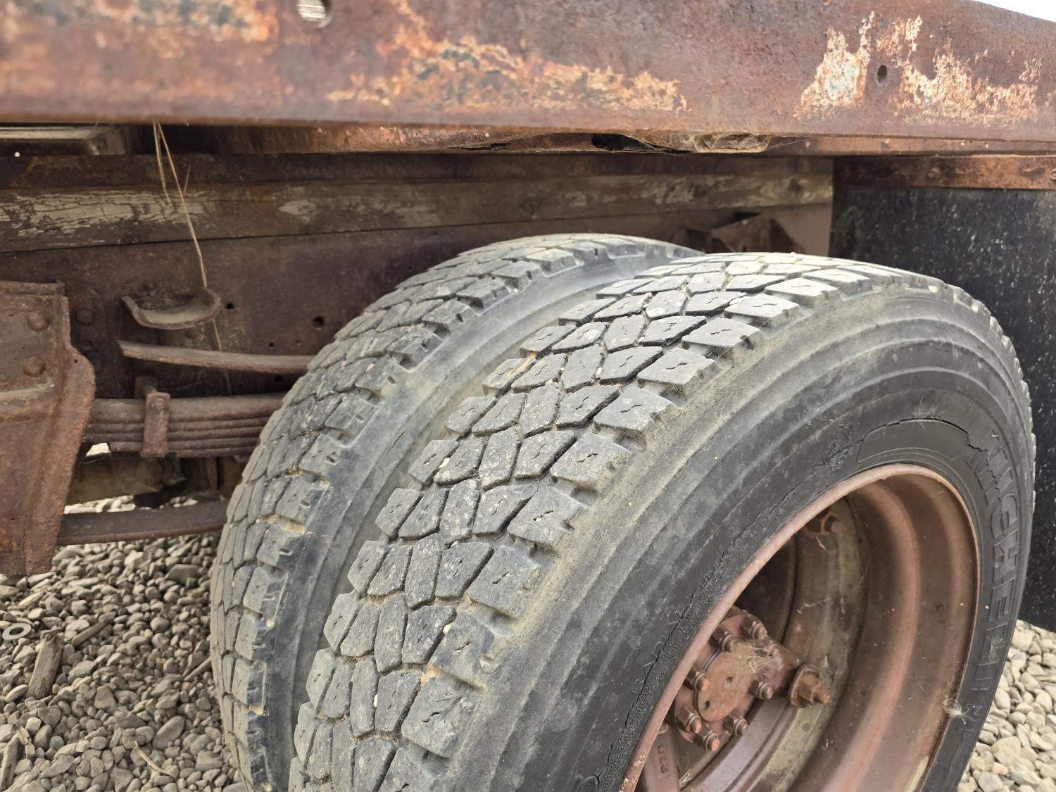 7.6 L diesel engine, manual transmission, 20 ft deck, spring suspension, 7,500 lb front axle, 15,800 lb rear axles, 218 inch WB, 10R22.5 front tires, 9R22.5 rear tires