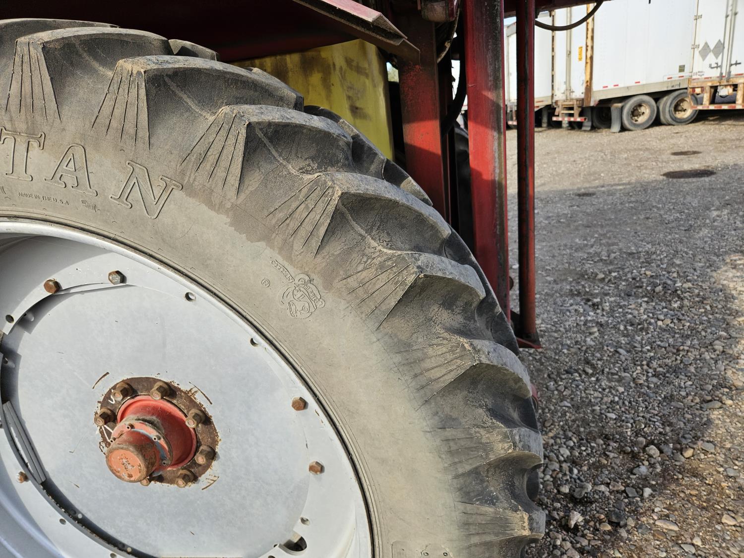 poly tank, 4 nozzle bodies, 1000 pump drive, monitor, chemical mix tank, rinse tank, 380/90R46 tires