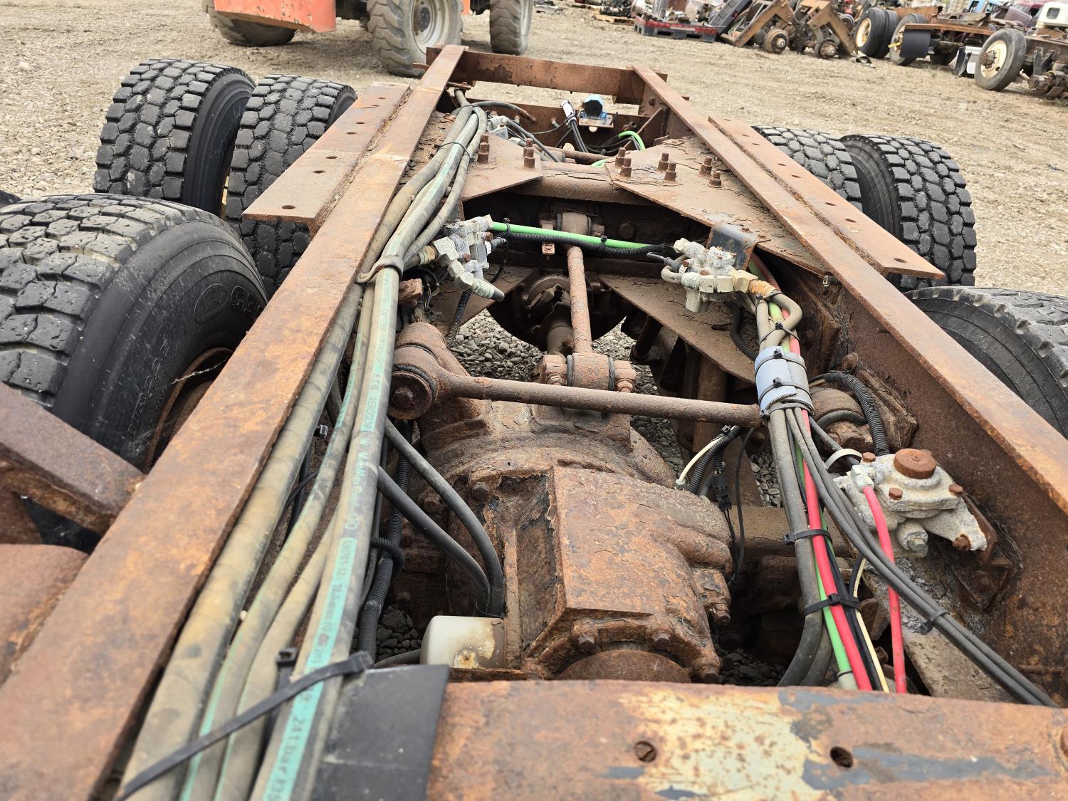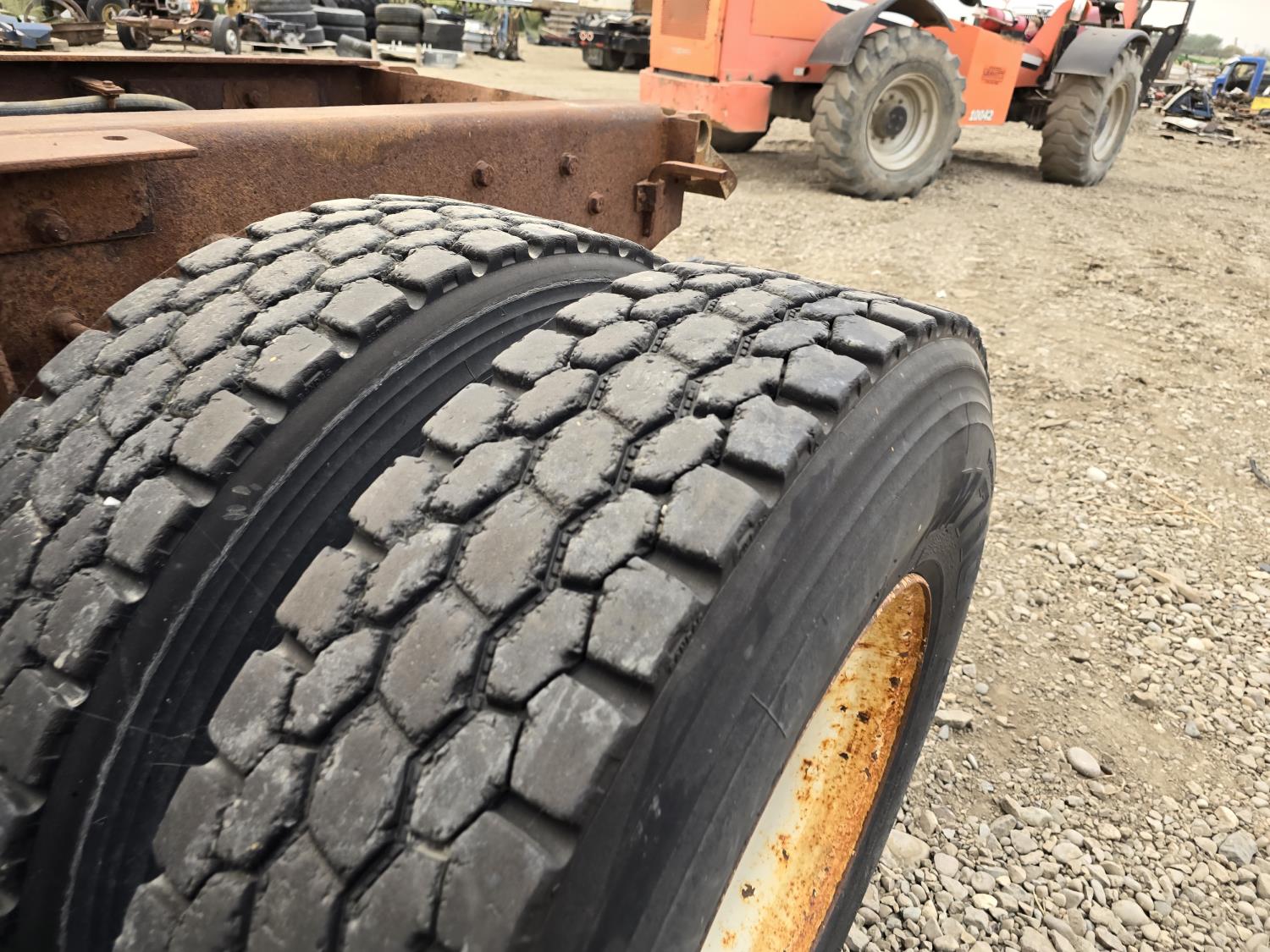 Cummins ISM engine, Eaton Fuller 13 speed manual transmission, hydraulic wet kit, front pump, rubber block suspension, 18,000 lb front axle, 40,000 lb rear axles, diff lock, 214 inch WB, 315/80R22.5 front tires, 11R22.5 rear tires