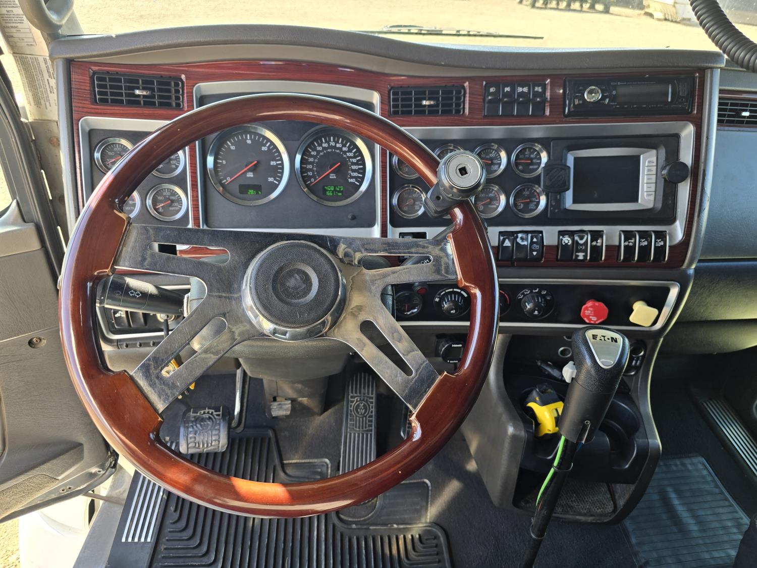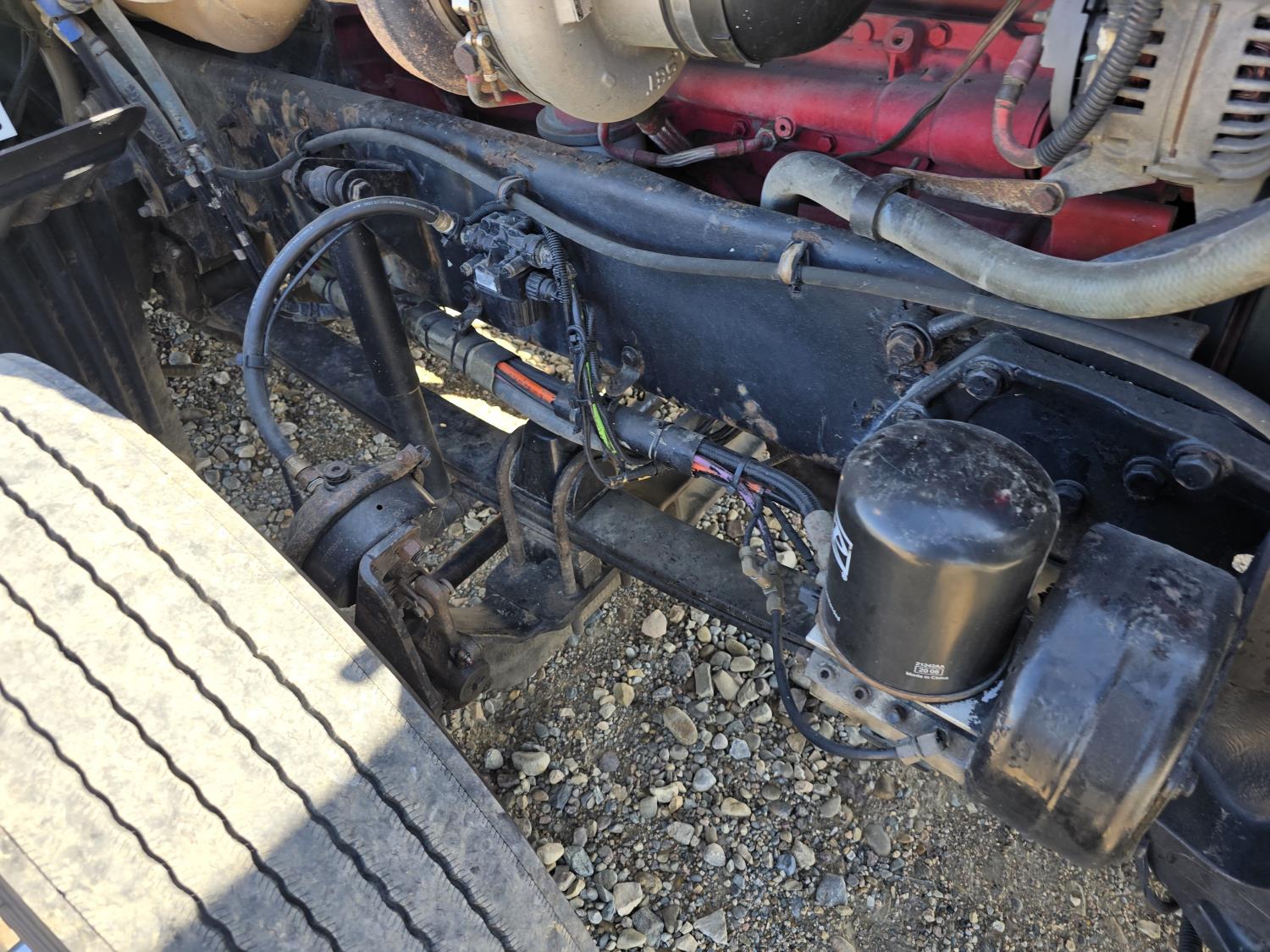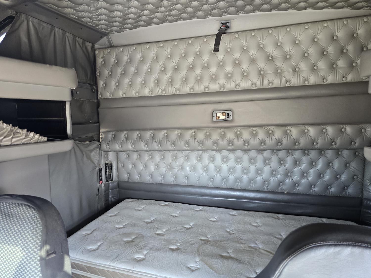 Cummins ISX485 15 L I6 485 HP engine, engine brake, engine block heater, Eaton Fuller 18 speed manual transmission, webasto cab heater, mid rise 62 inch sleeper, fridge, bunk beds, A/C, leather interior, air ride seats, CB radio, 2-way radio, stereo, moose bumper, air ride suspension, 13,000 lb front axle, 40,000 lb rear axles, 3 way diff locks, 3.70 ratio, 234 inch WB, all aluminum wheels, 11R22.5 tires