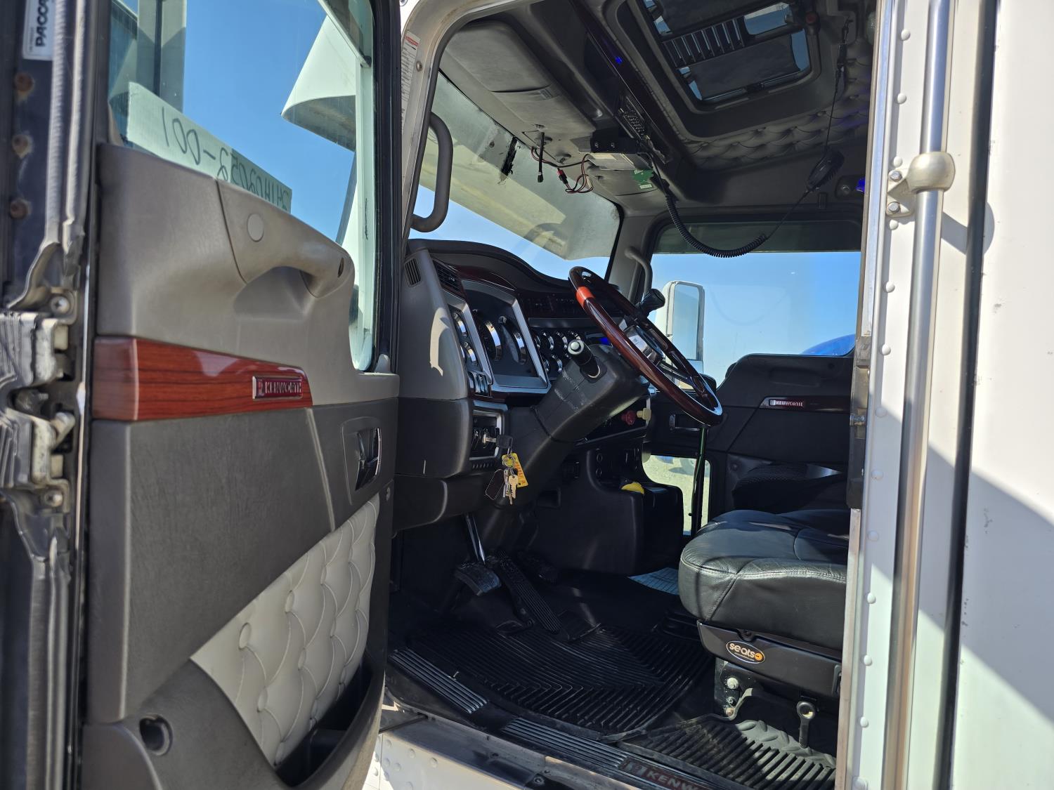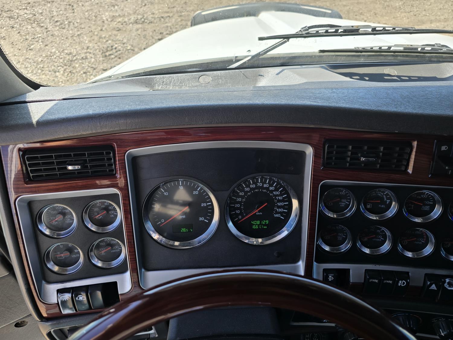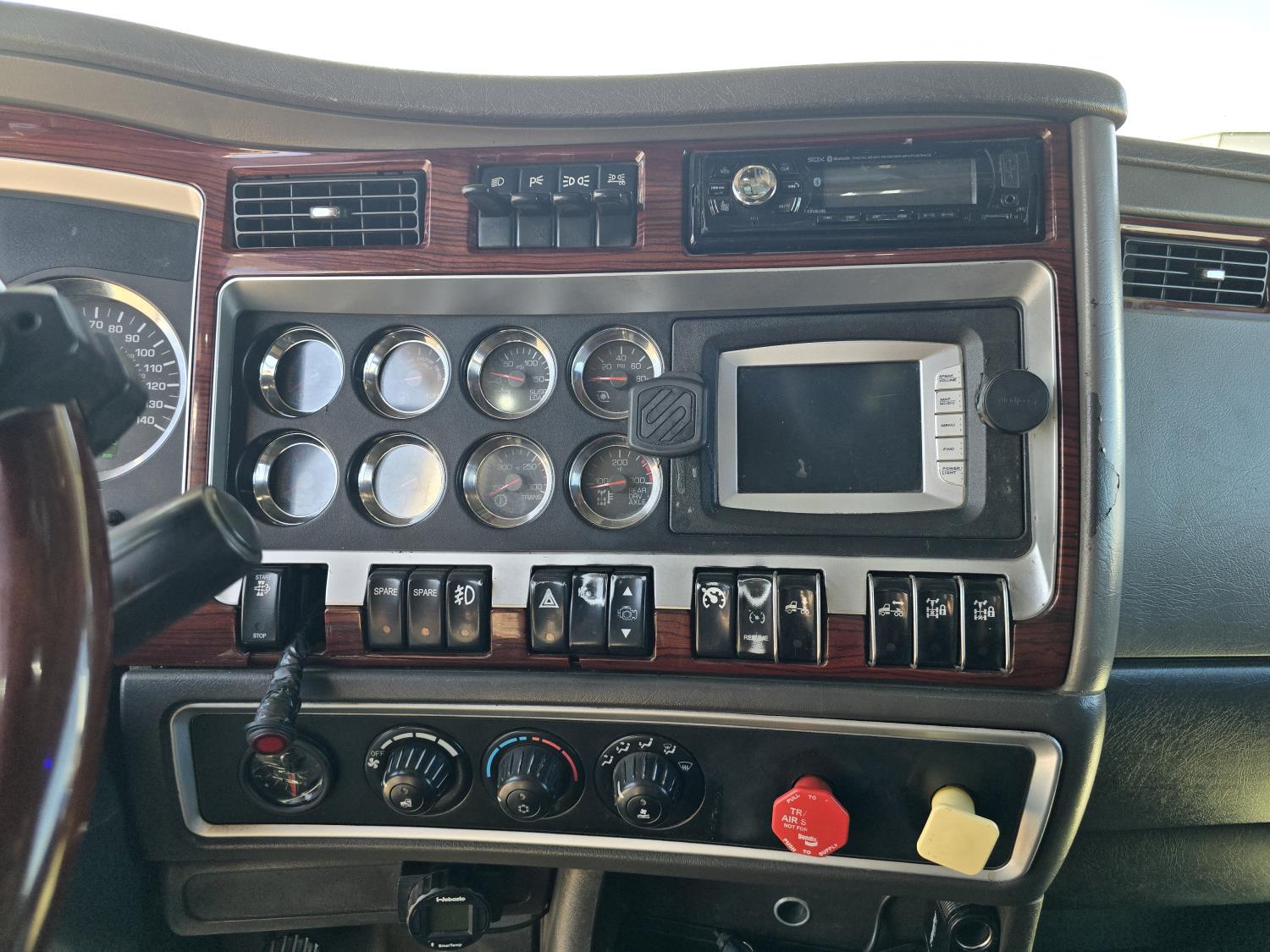 Cummins ISX485 15 L I6 485 HP engine, engine brake, engine block heater, Eaton Fuller 18 speed manual transmission, webasto cab heater, mid rise 62 inch sleeper, fridge, bunk beds, A/C, leather interior, air ride seats, CB radio, 2-way radio, stereo, moose bumper, air ride suspension, 13,000 lb front axle, 40,000 lb rear axles, 3 way diff locks, 3.70 ratio, 234 inch WB, all aluminum wheels, 11R22.5 tires