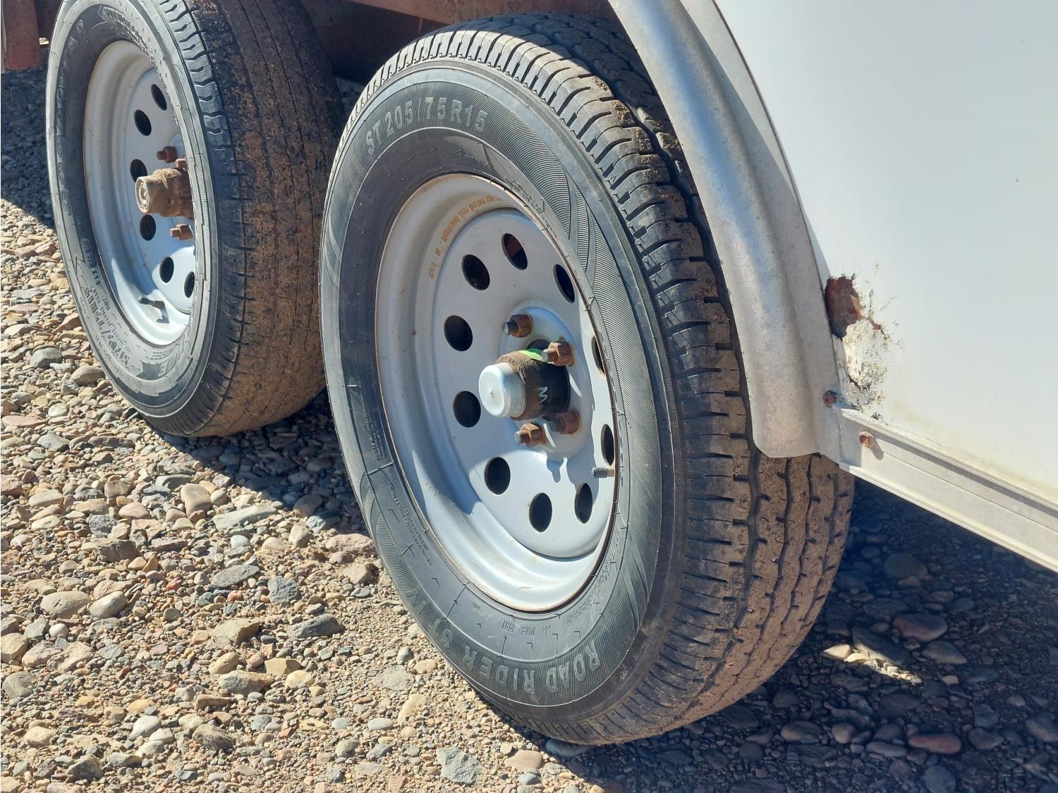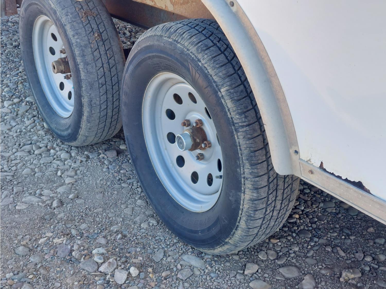100 inch interior width, 85 inch interior height, ball hitch, side door, barn doors, electric brakes, spring suspension, rear door 90" W x 72" T, 7000 lb axles, 205/75R15 tires