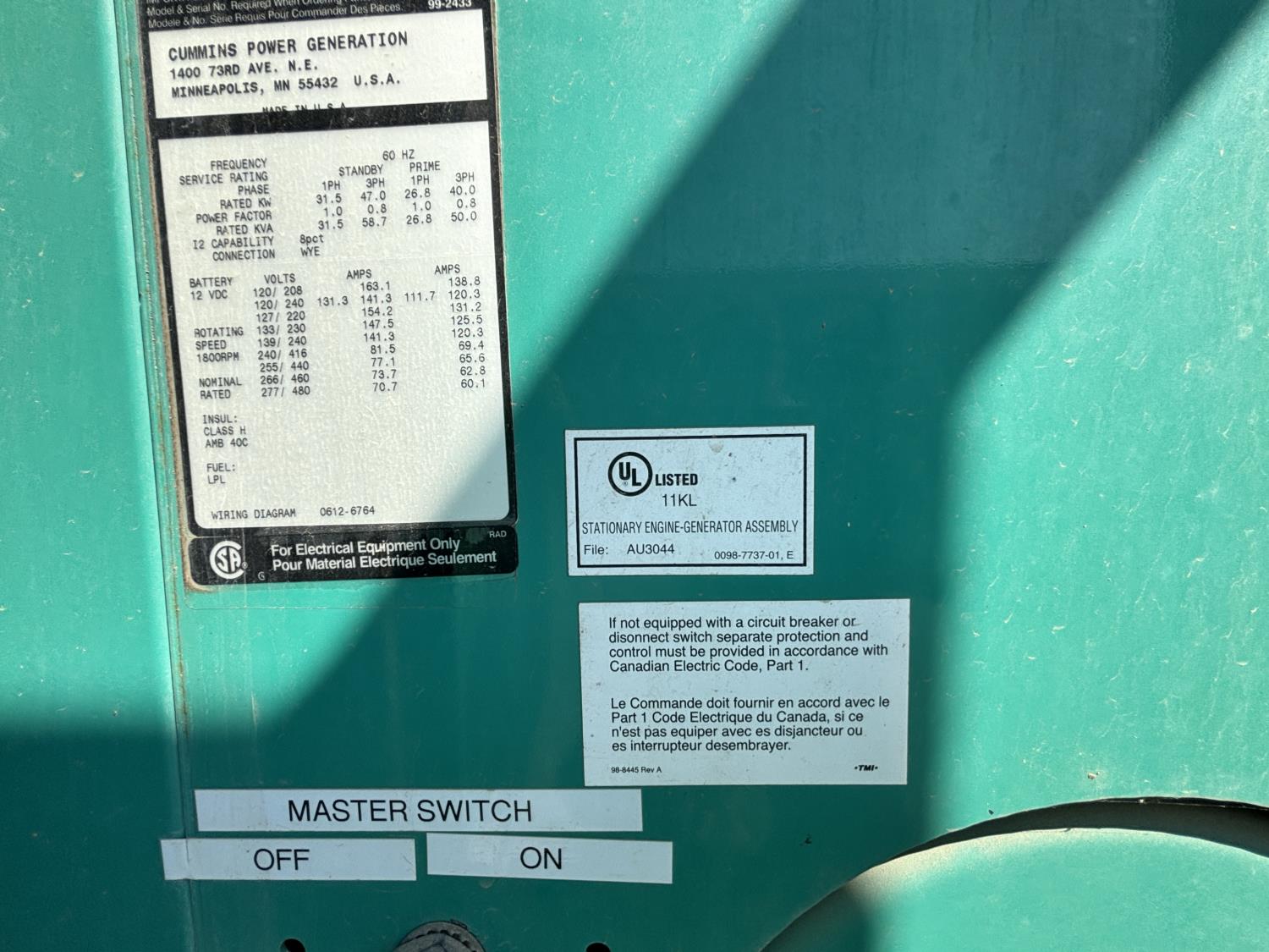 Ford 4.2L 6 cylinder natural gas engine, 277/480 volt, 3 phase