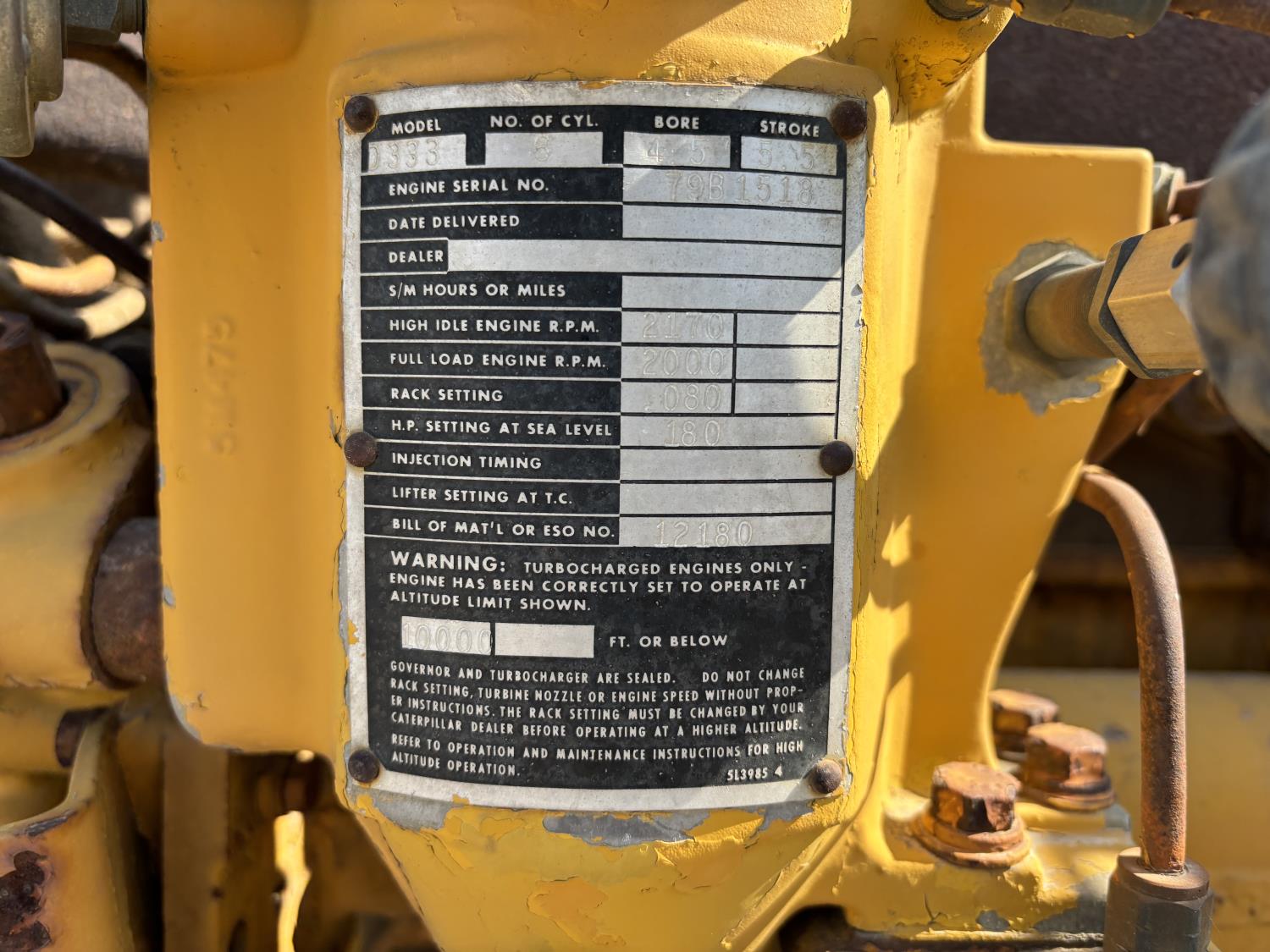 Caterpillar D333 6 cylinder diesel engine, 125 KVA 216/432 volts, 3 phase