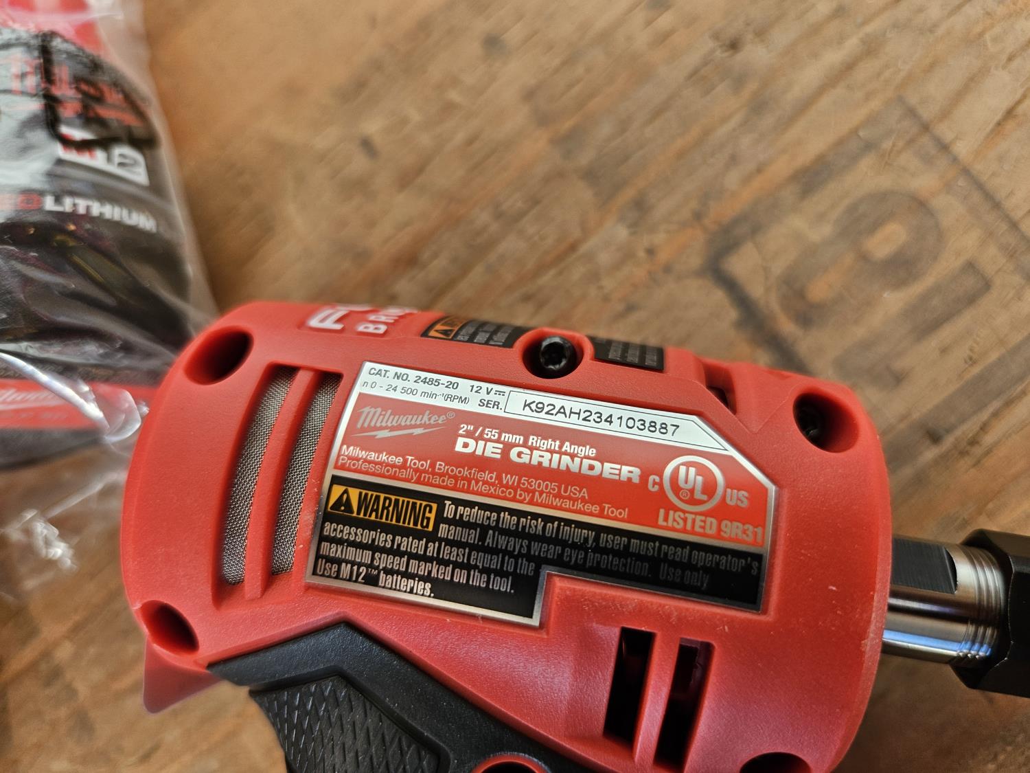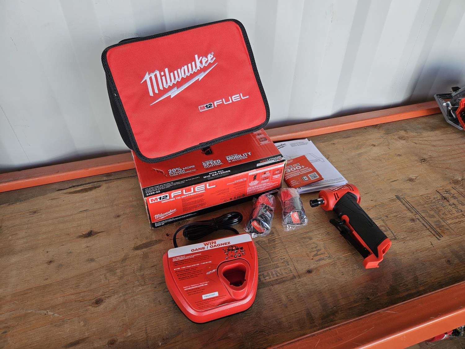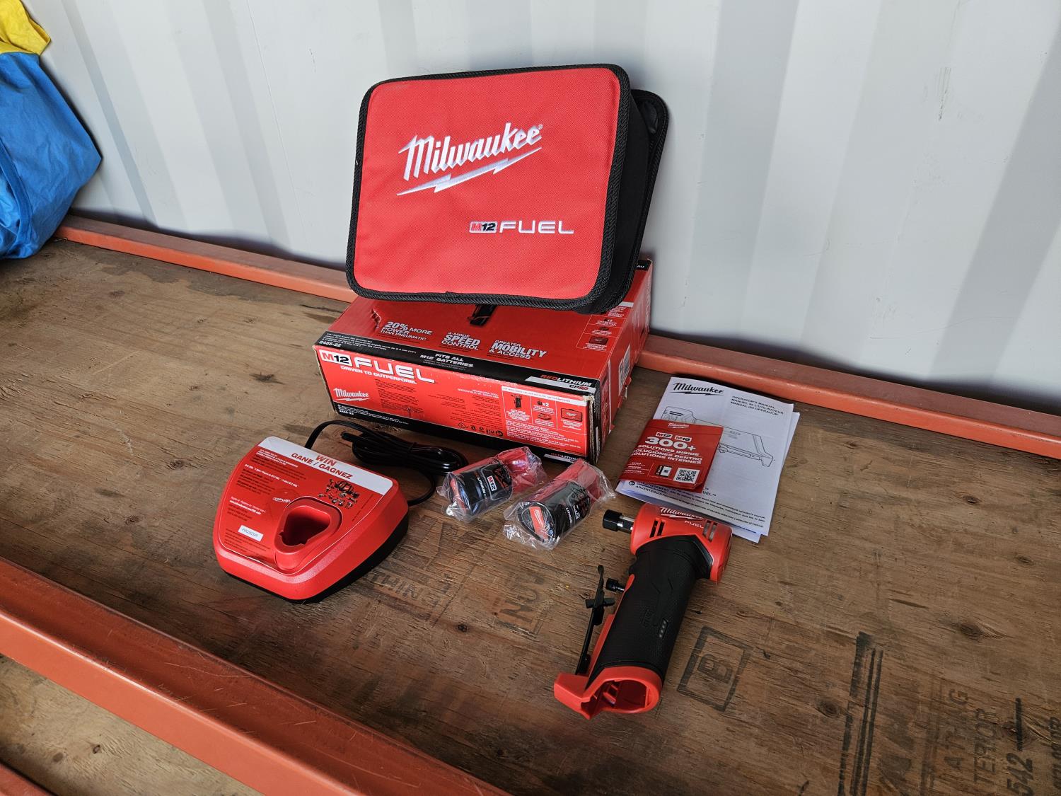 1150 Milwaukee 1/4 Inch Right Angle Die Grinder Kit W/ (2) Batteries and Charger (Unused)