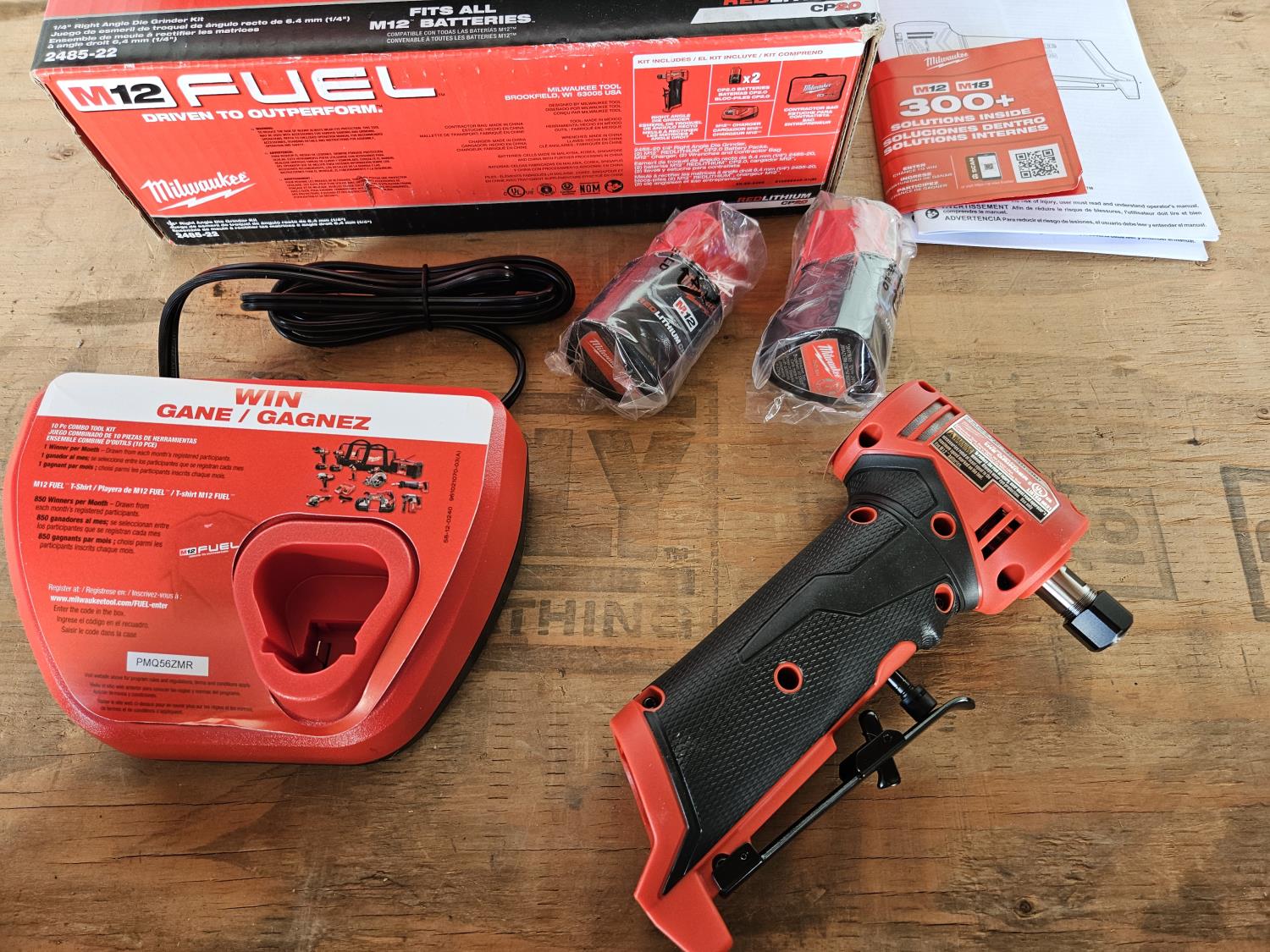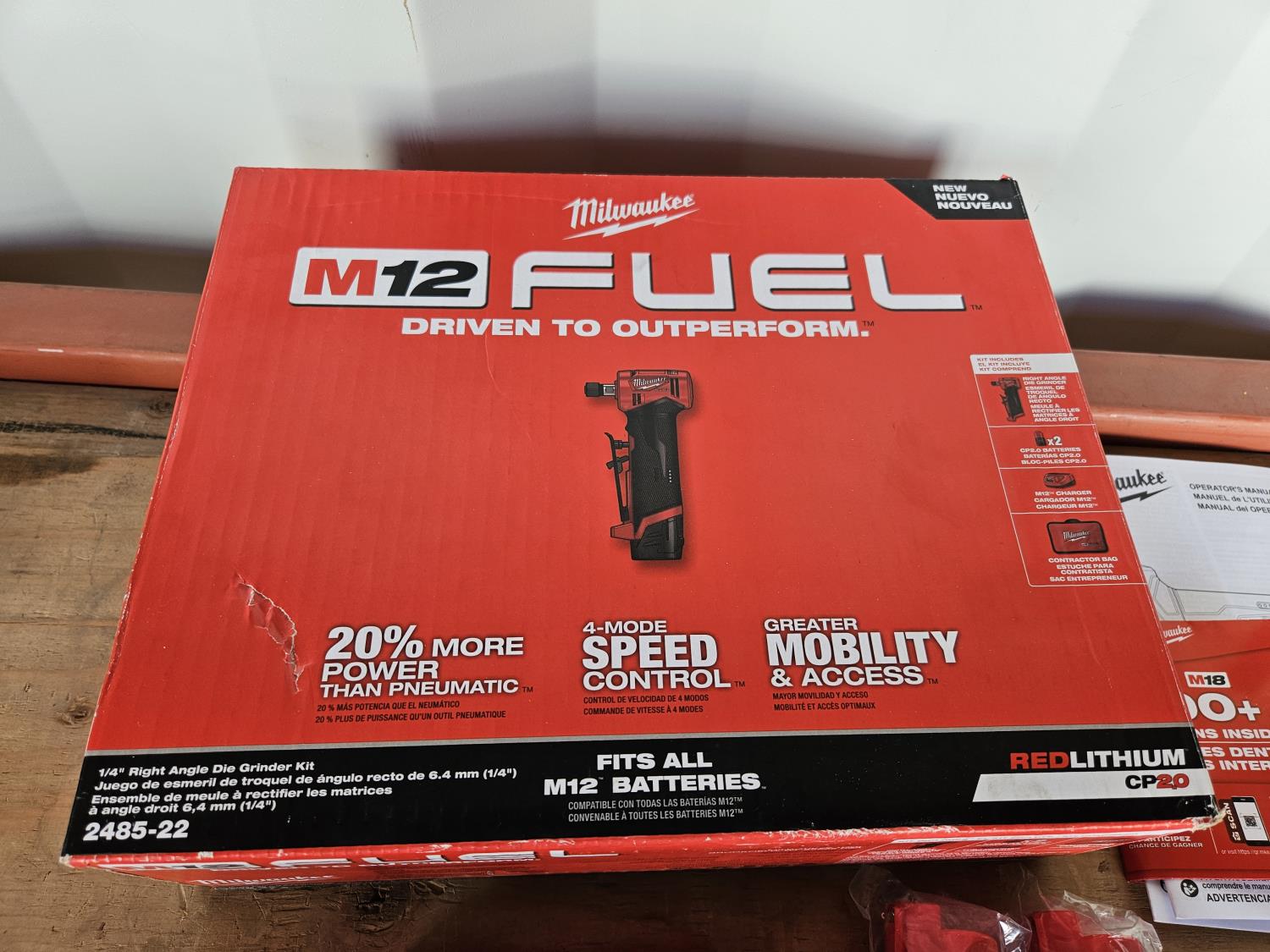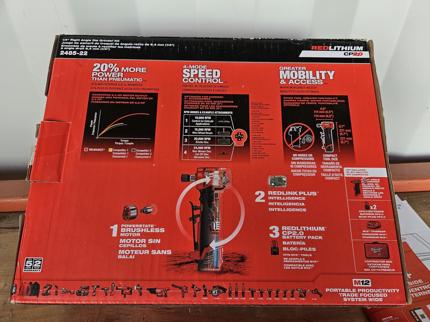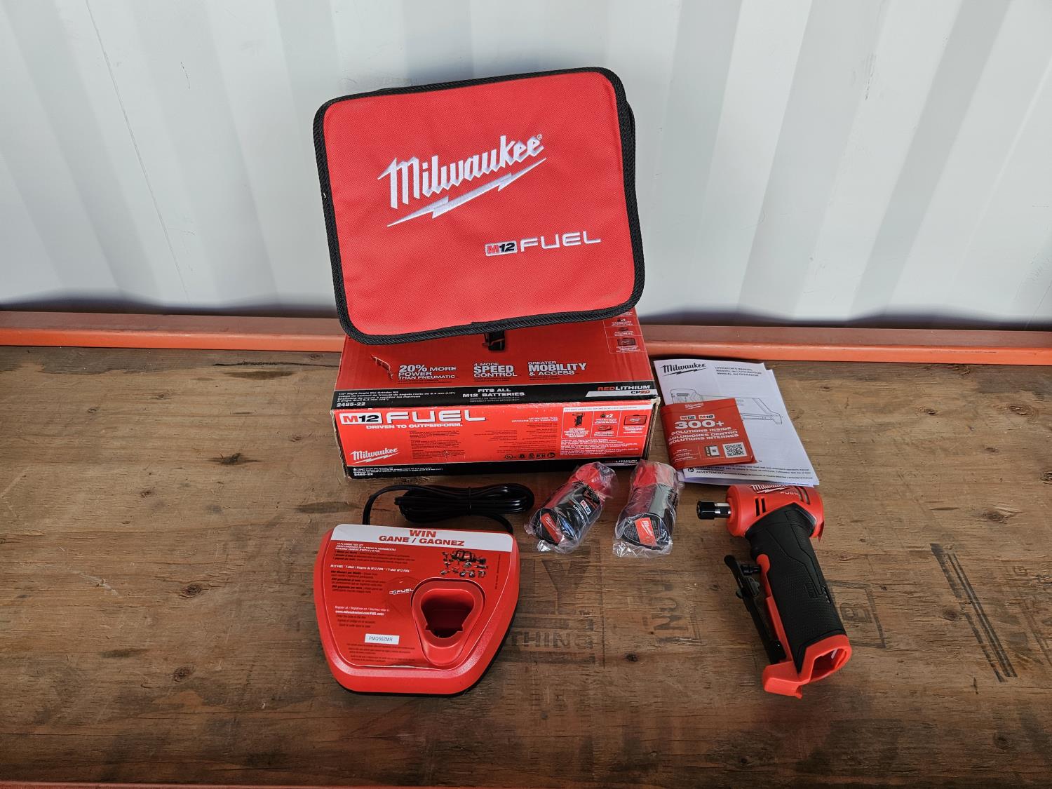 1150 Milwaukee 1/4 Inch Right Angle Die Grinder Kit W/ (2) Batteries and Charger (Unused)