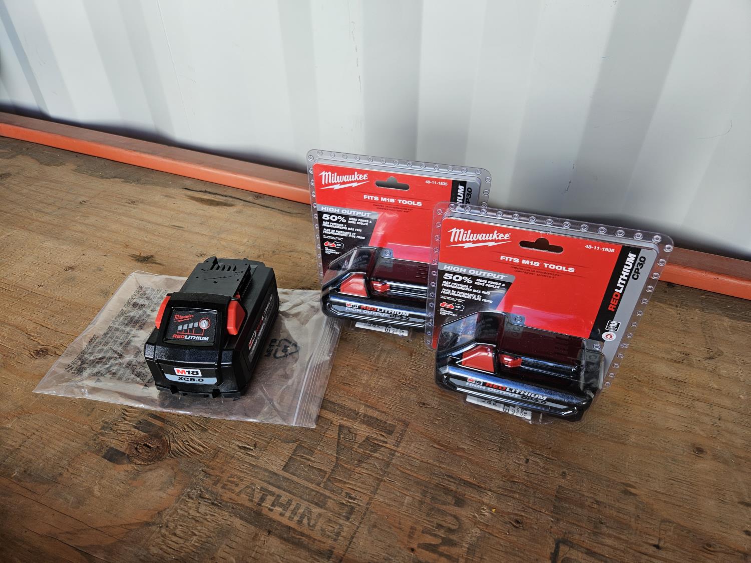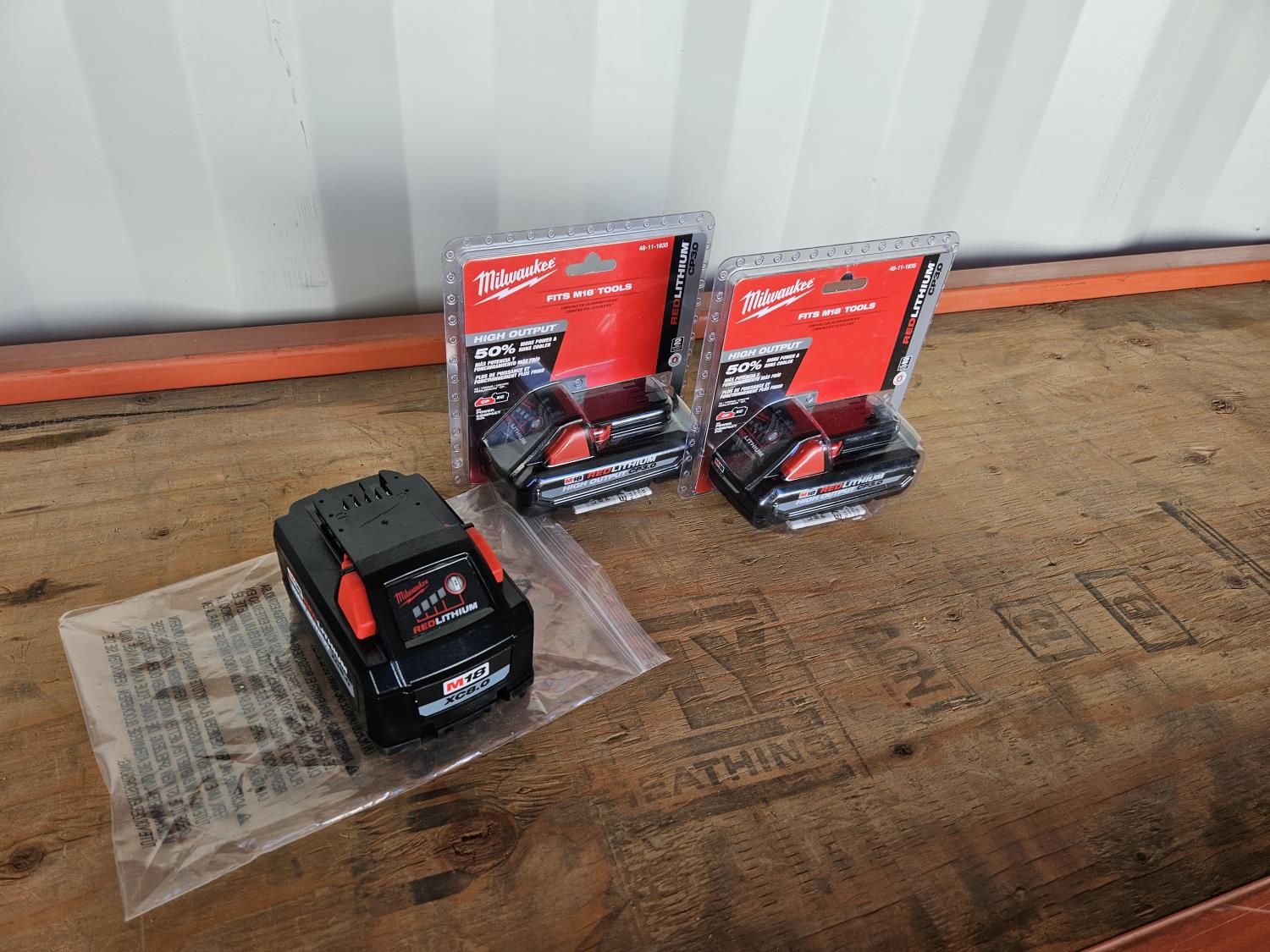 1151 Milwaukee M18 Red Lithium Cp3.0 2-Battery Pack w/ M18 Xc8.0 Battery (Unused)